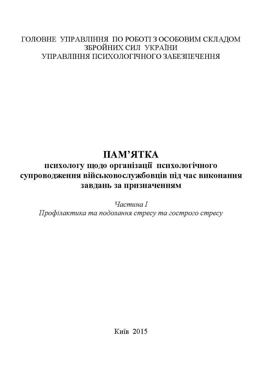 Купити Пам’ятка психологу щодо організації психологічного супроводження військовослужбовців під час виконання завдань за призначенням.