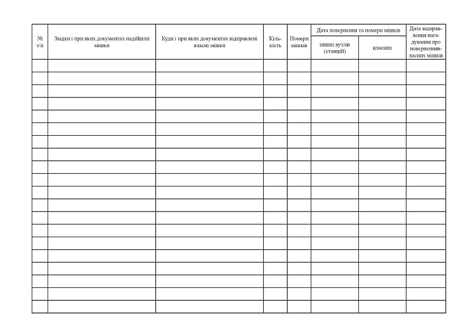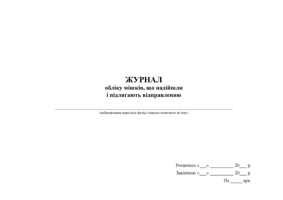 Журнал обліку мішків, що надійшли і підлягають відправленню.