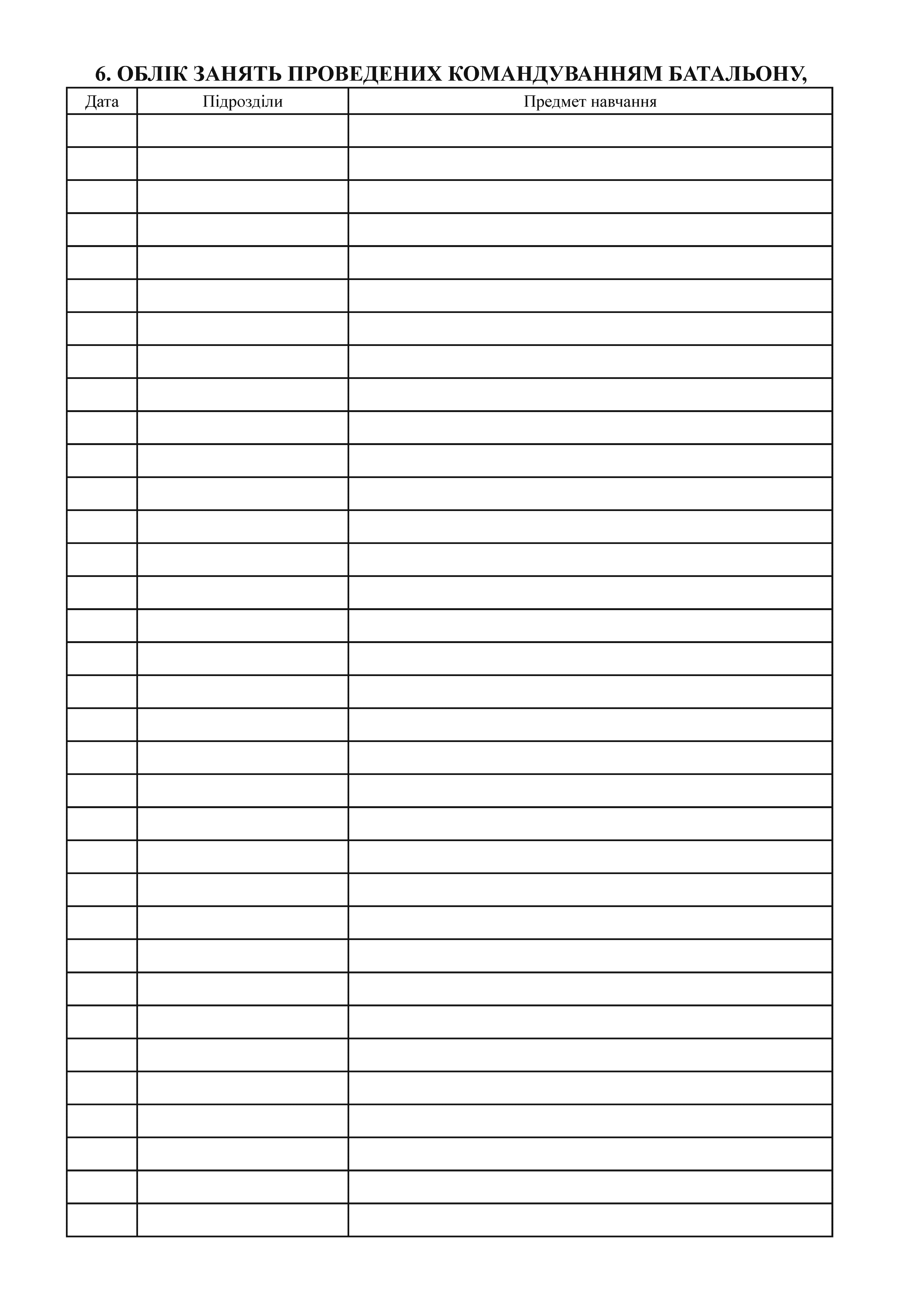 Журнал обліку бойової підготовки батальйону (дивізіону).