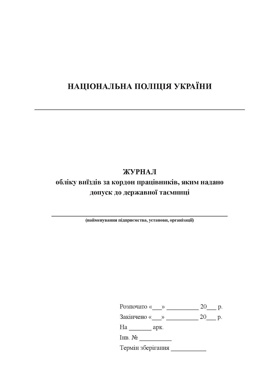 Журнал обліку виїздів за кордон працівників, яким надано допуск до державної таємниці.