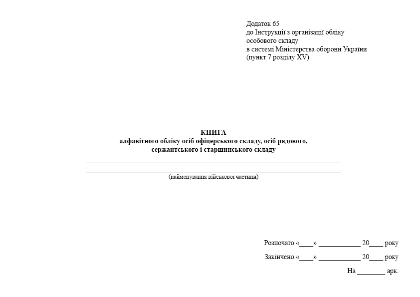 Книгу алфавітного обліку офіцерів, осіб рядового, сержантського і старшинського складу.