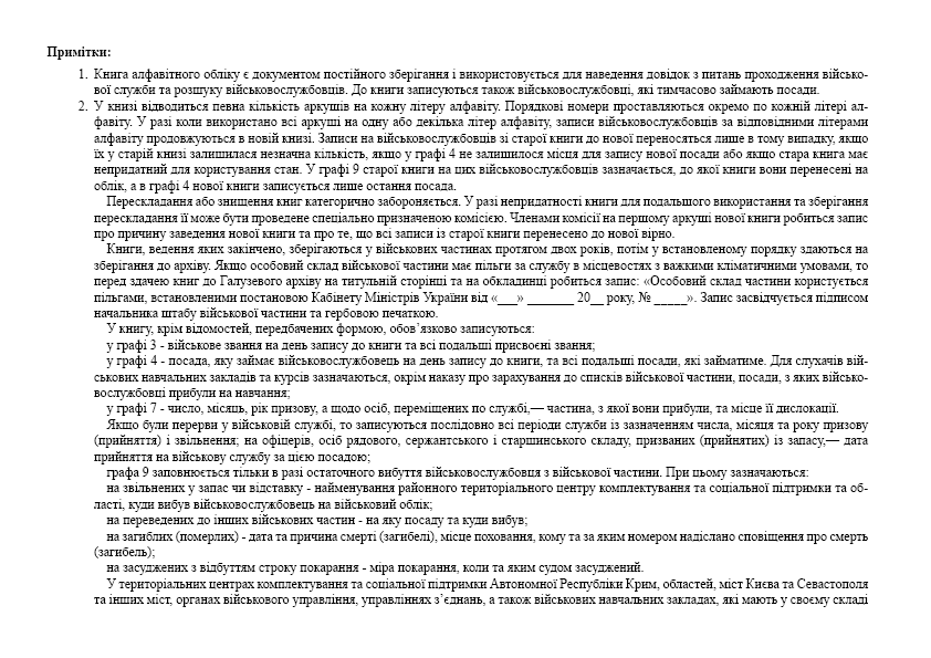 до Інструкції з організації обліку особового