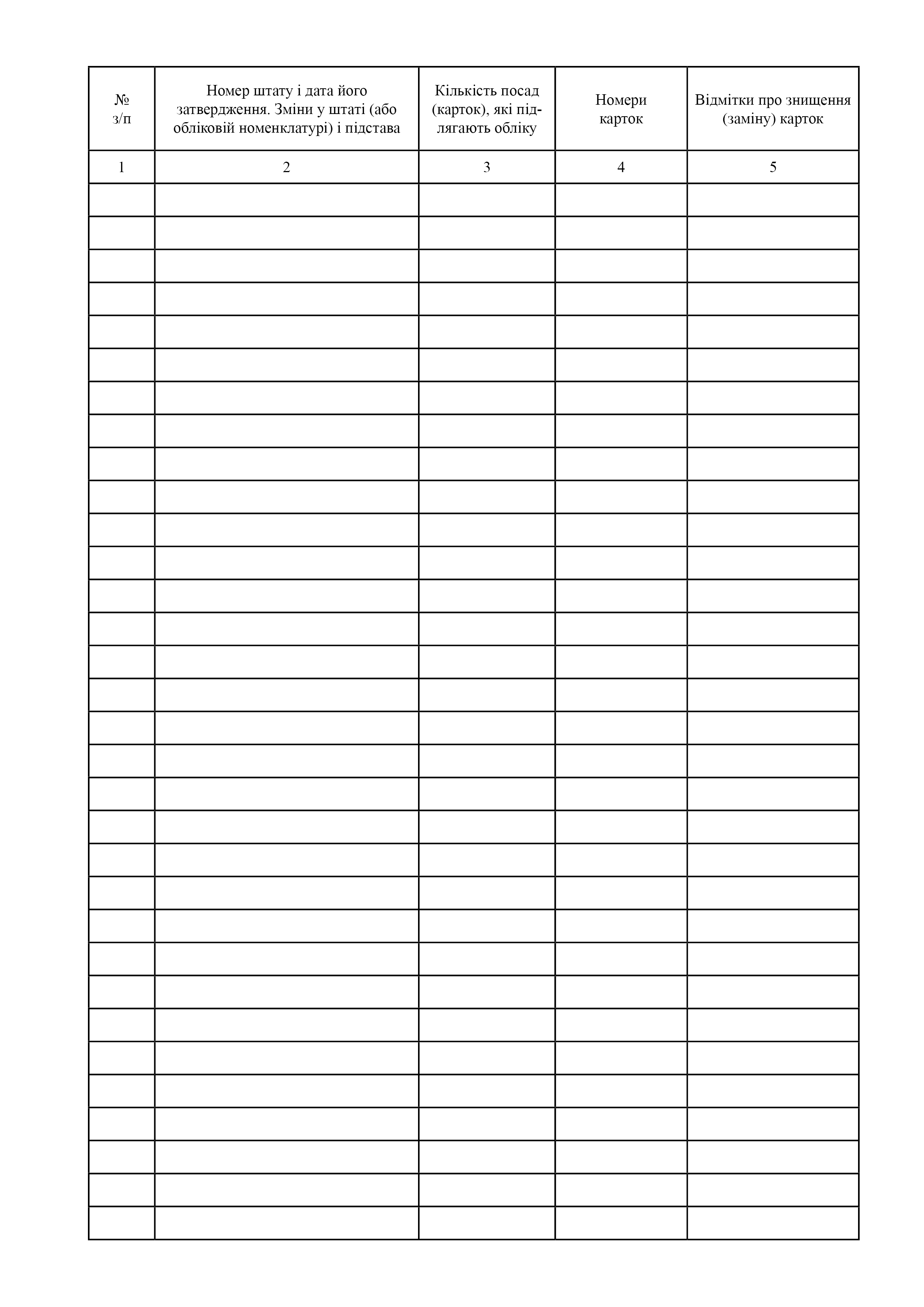 Книга обліку штатно-посадових карток.