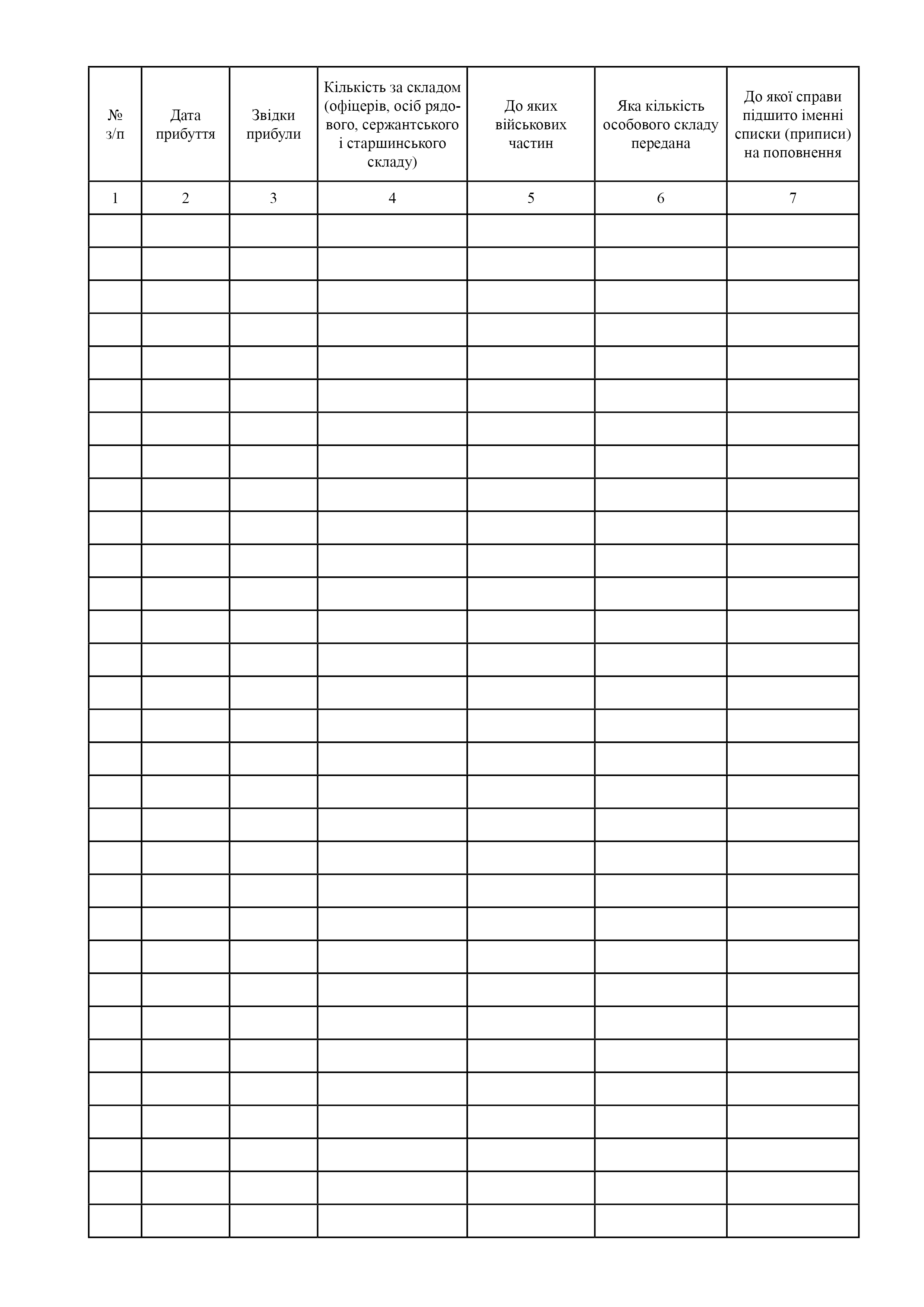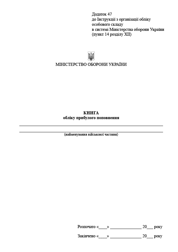 Книгу обліку прибулого поповнення.