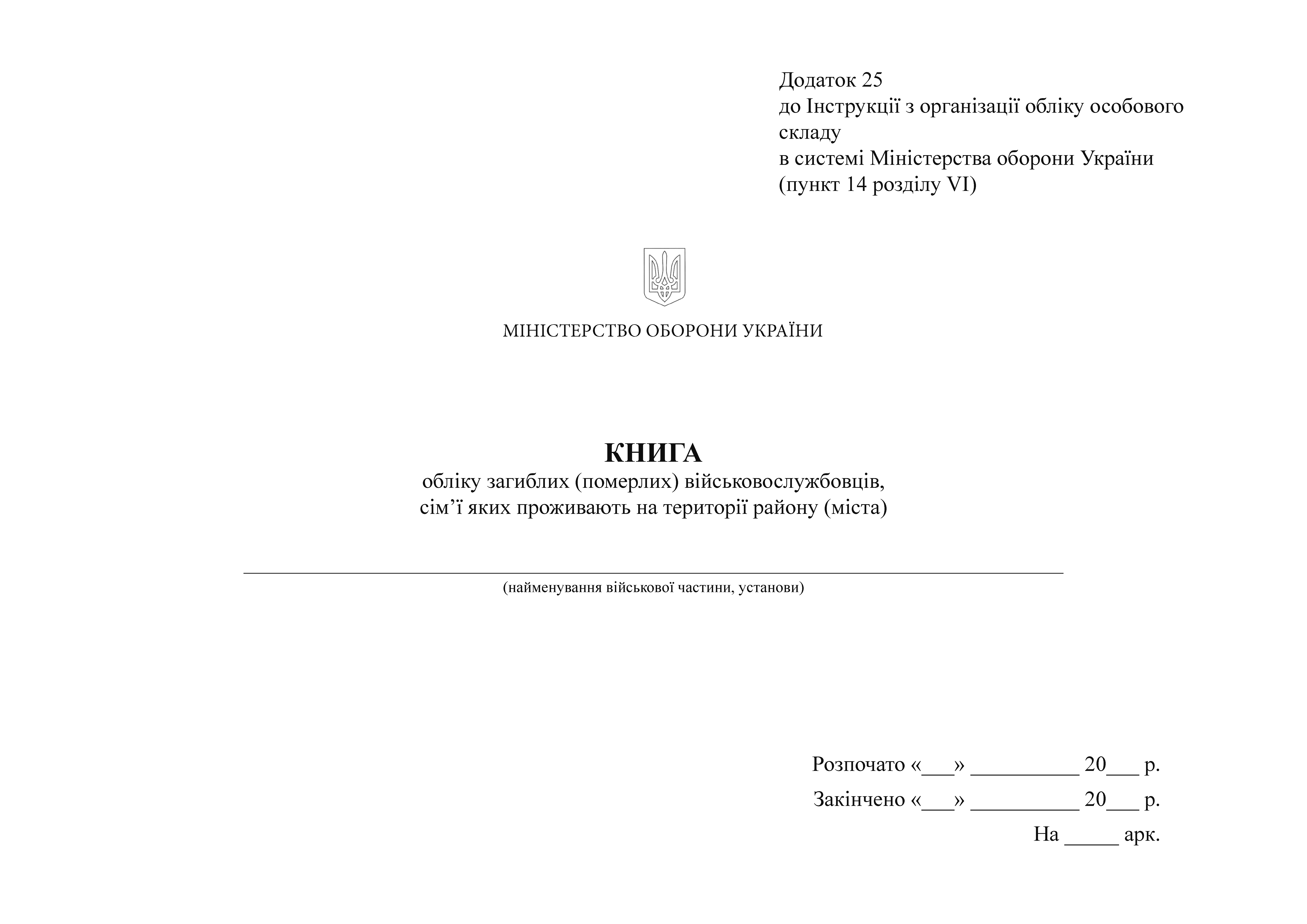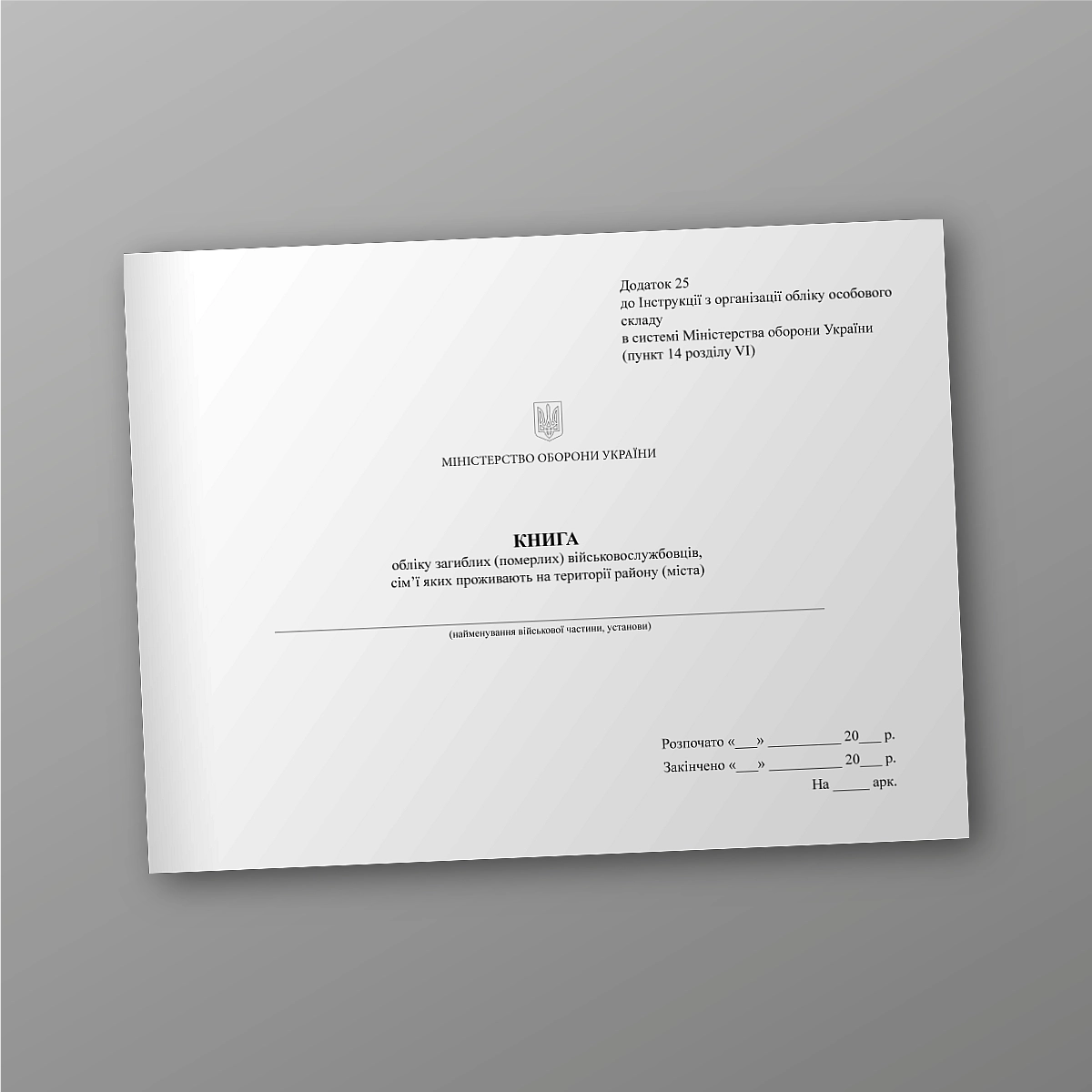 Купити Книгу обліку загиблих (померлих) військовослужбовців, сім’ї яких проживають на території району (міста).
