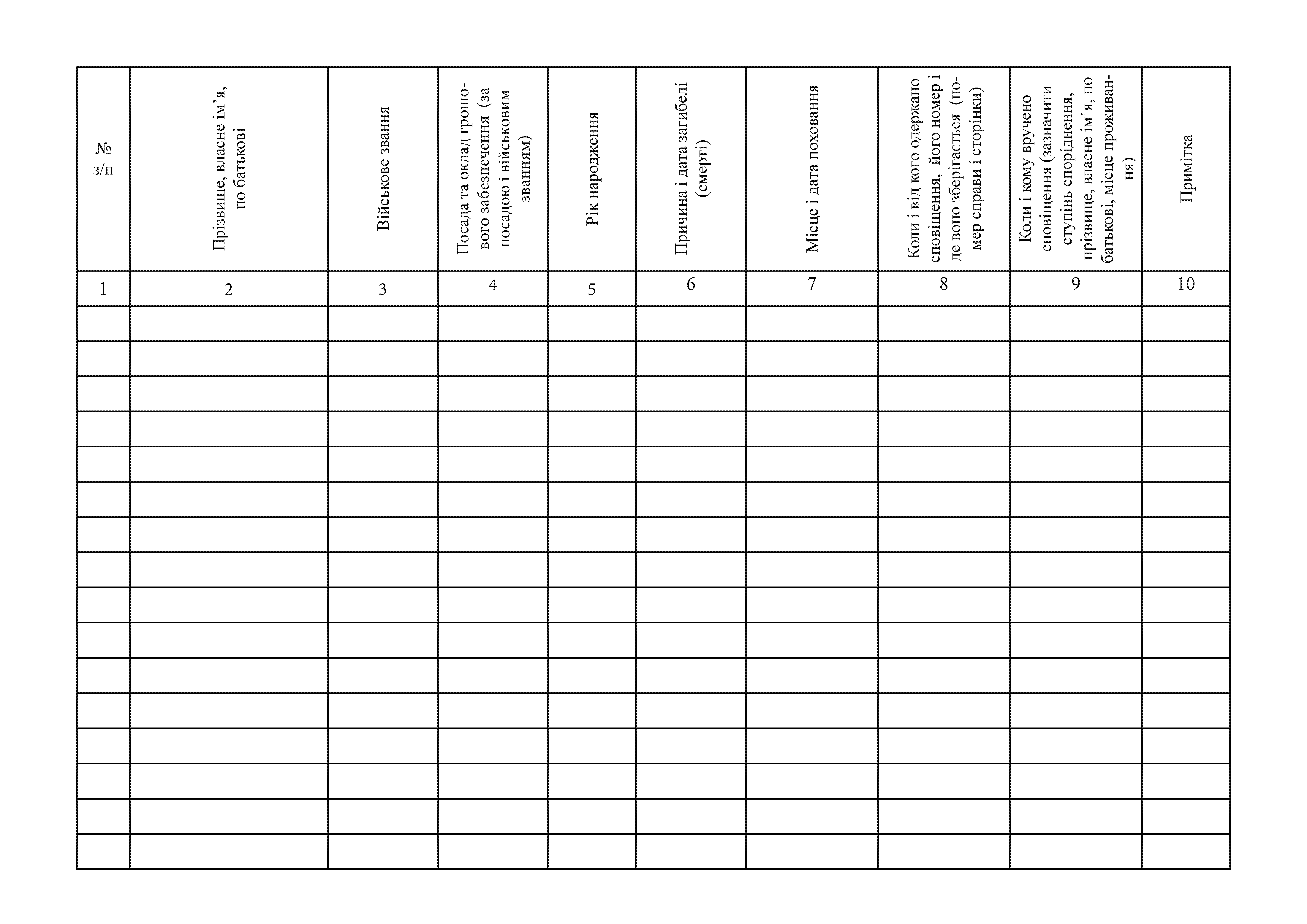 Книгу обліку загиблих (померлих) військовослужбовців, сім’ї яких проживають на території району (міста).