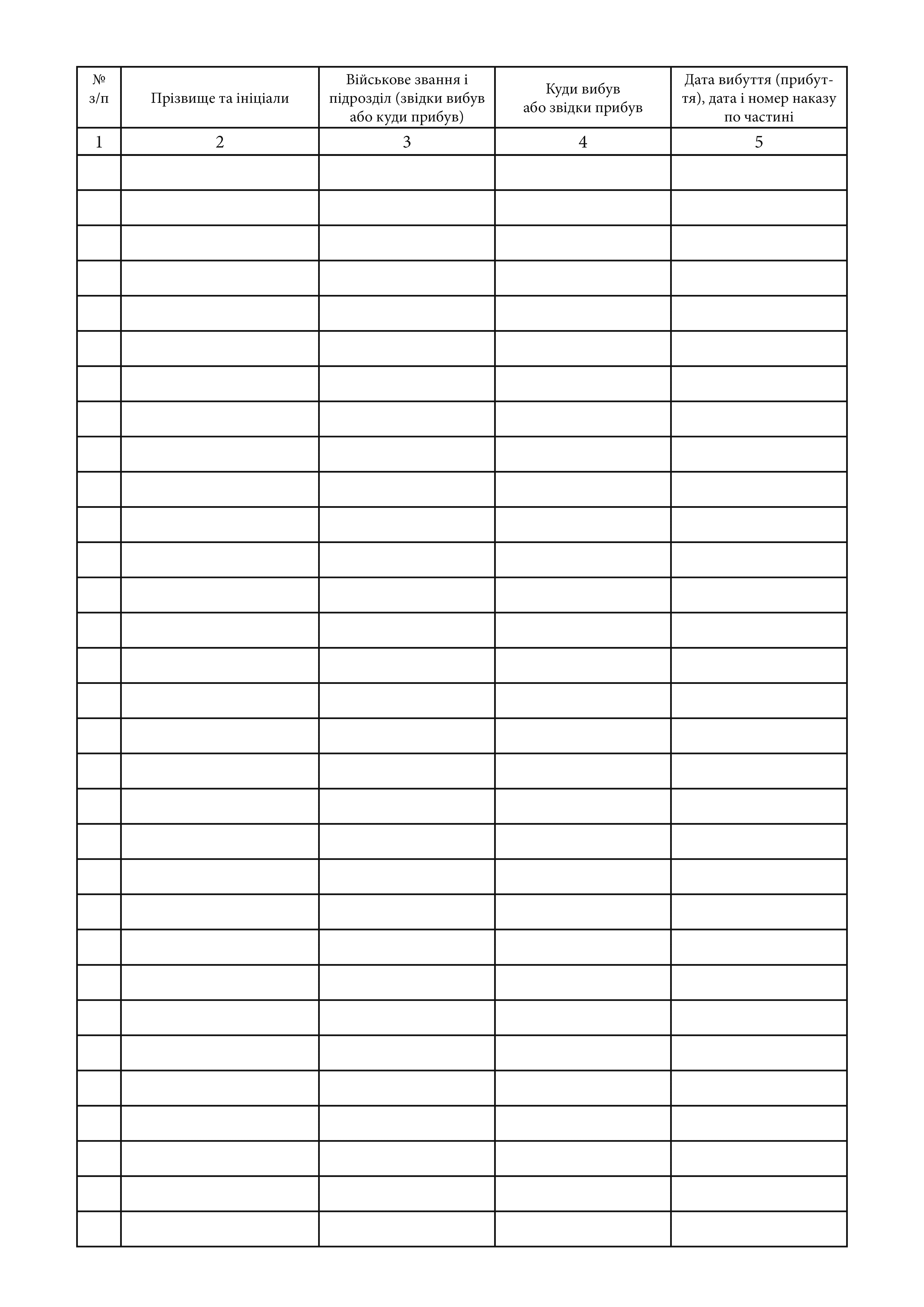 Книгу обліку вибулого та прибулого особового складу.