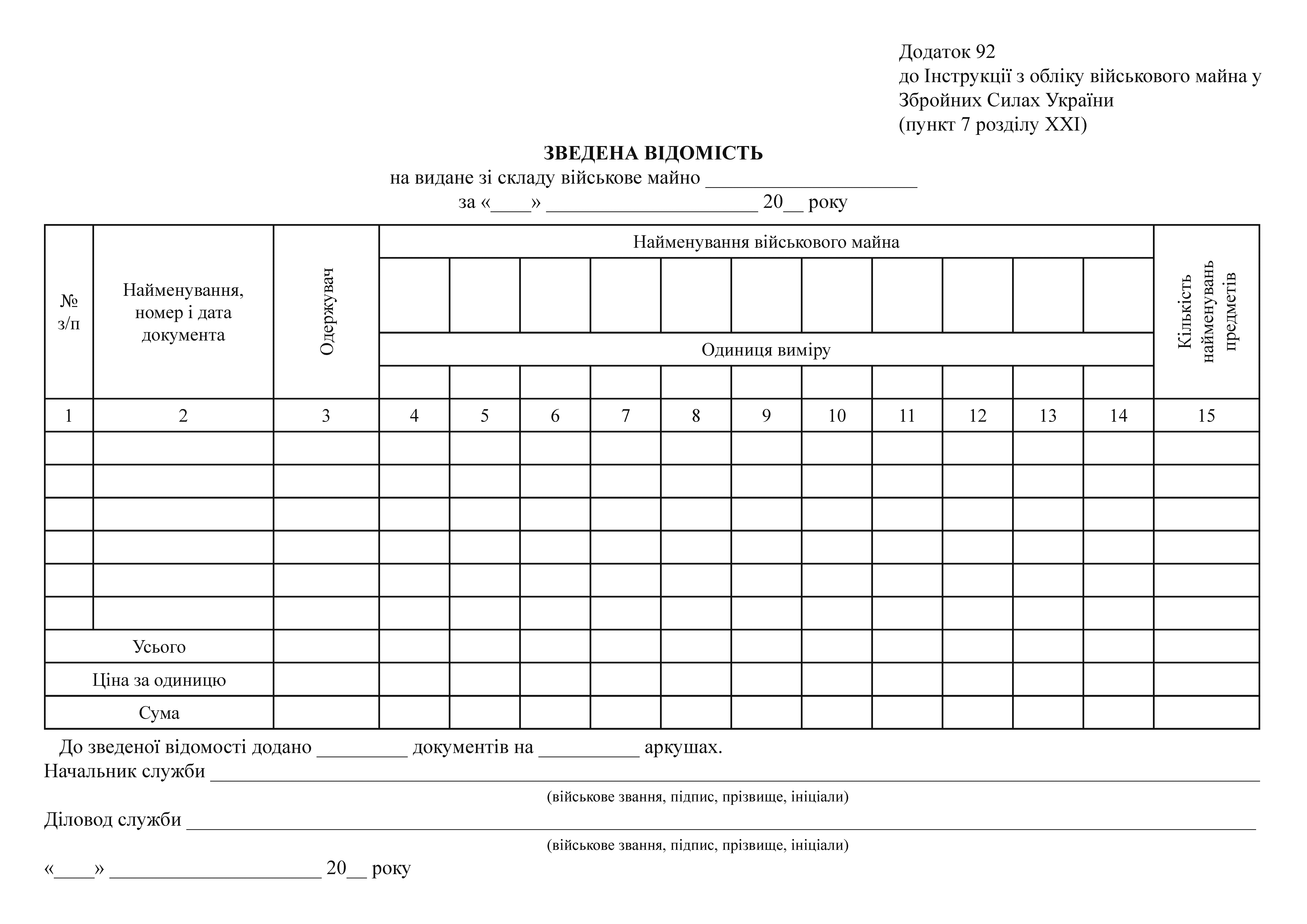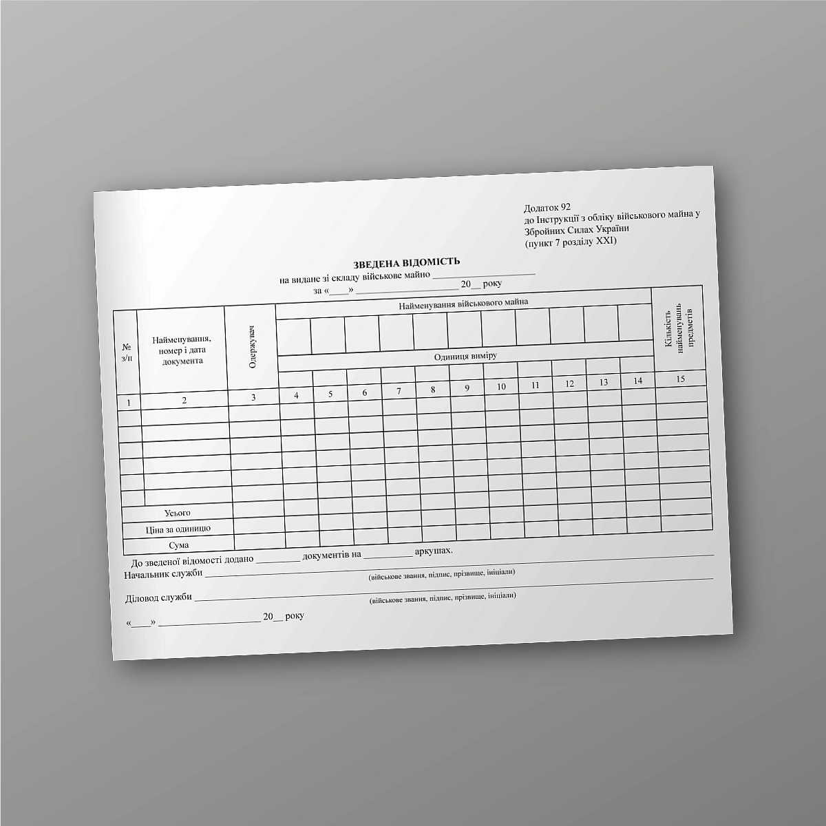 Купити Зведена відомість на видане зі складу військове майно, 50 аркушів.