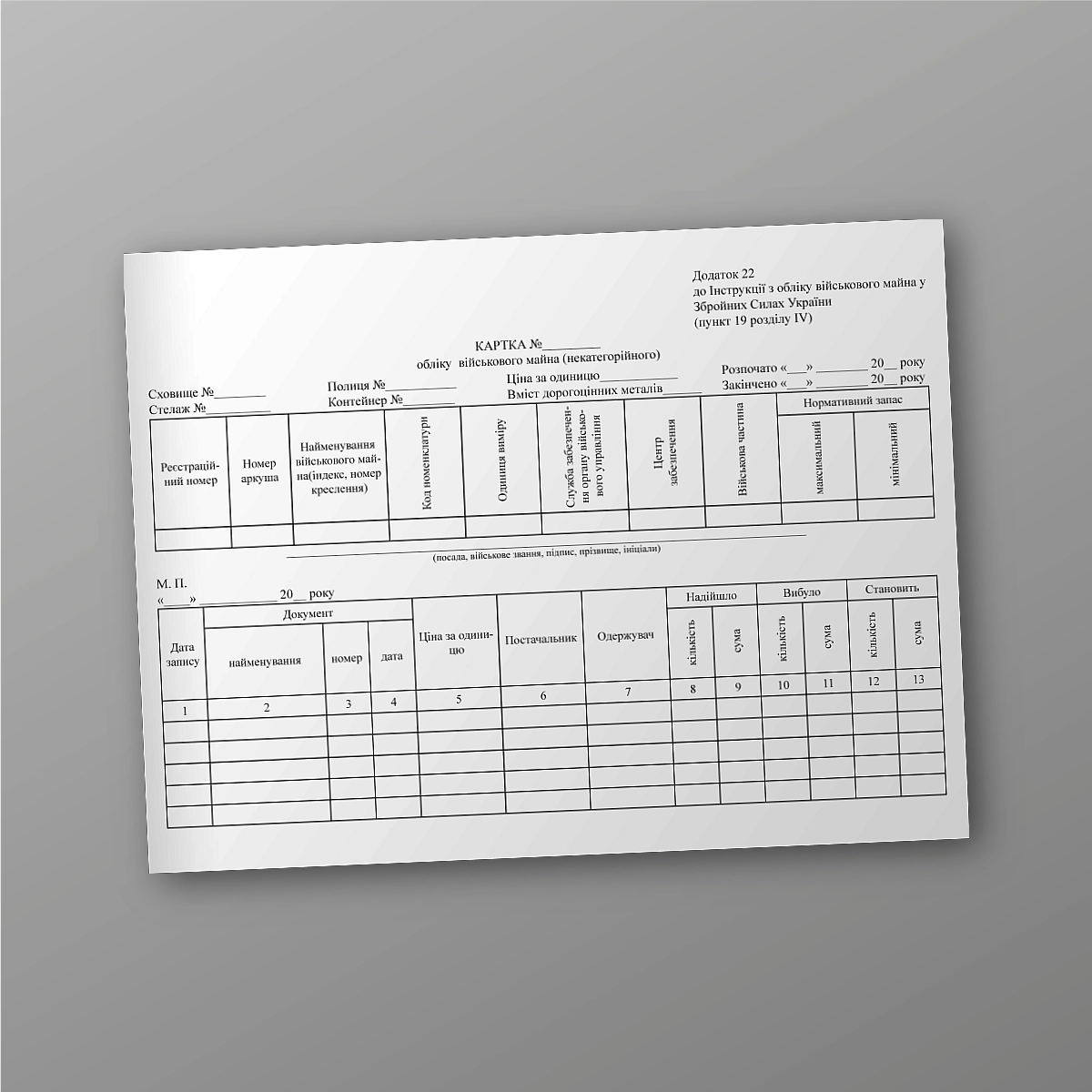 Купити Картка обліку військового майна (некатегорійного), лист 1.