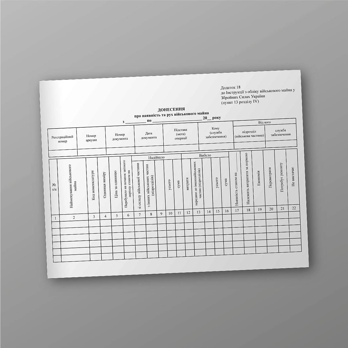 Купити Донесення про наявність та рух військового майна.