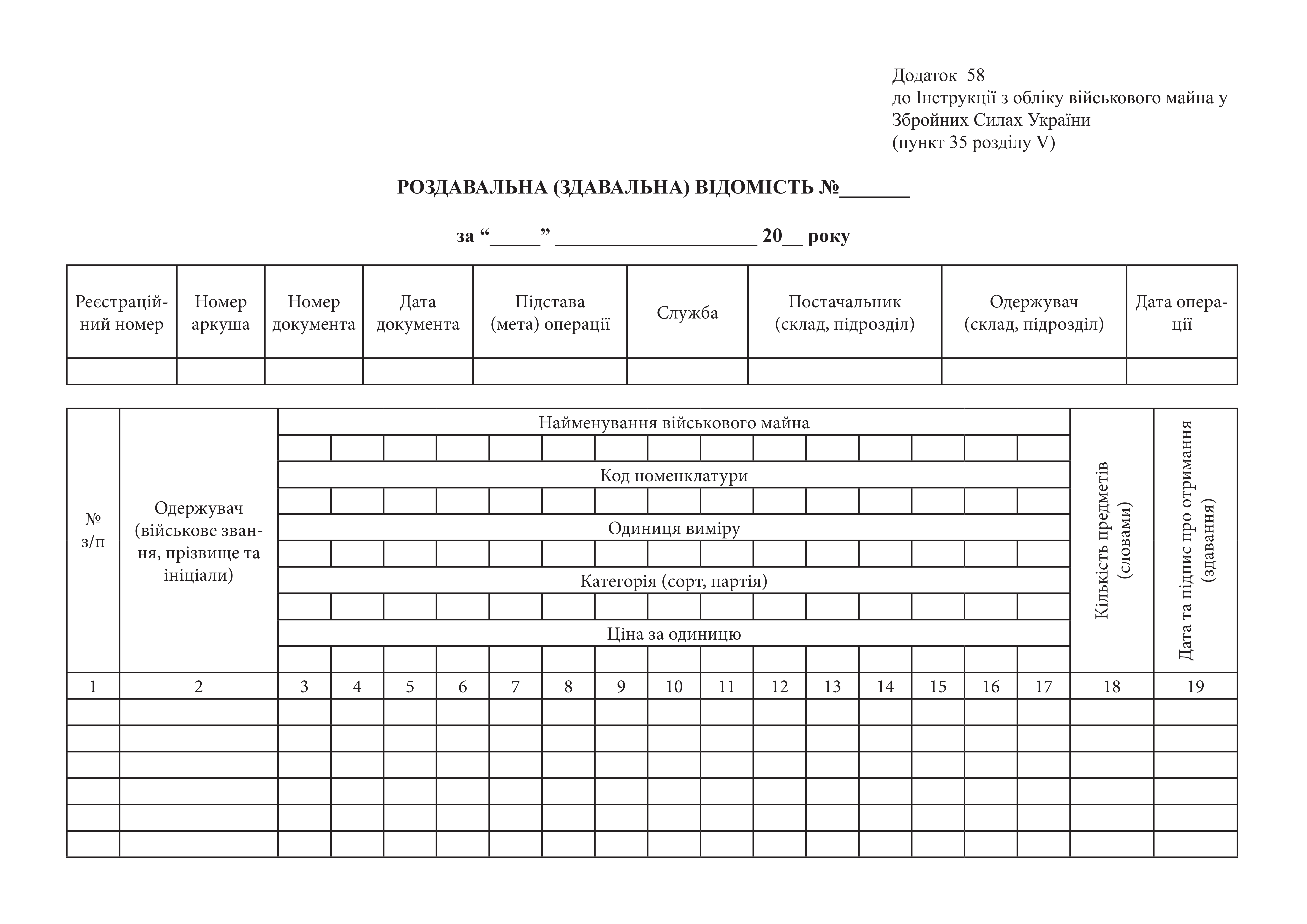 Роздавальна (здавальна) відомість. Відривні бланки.