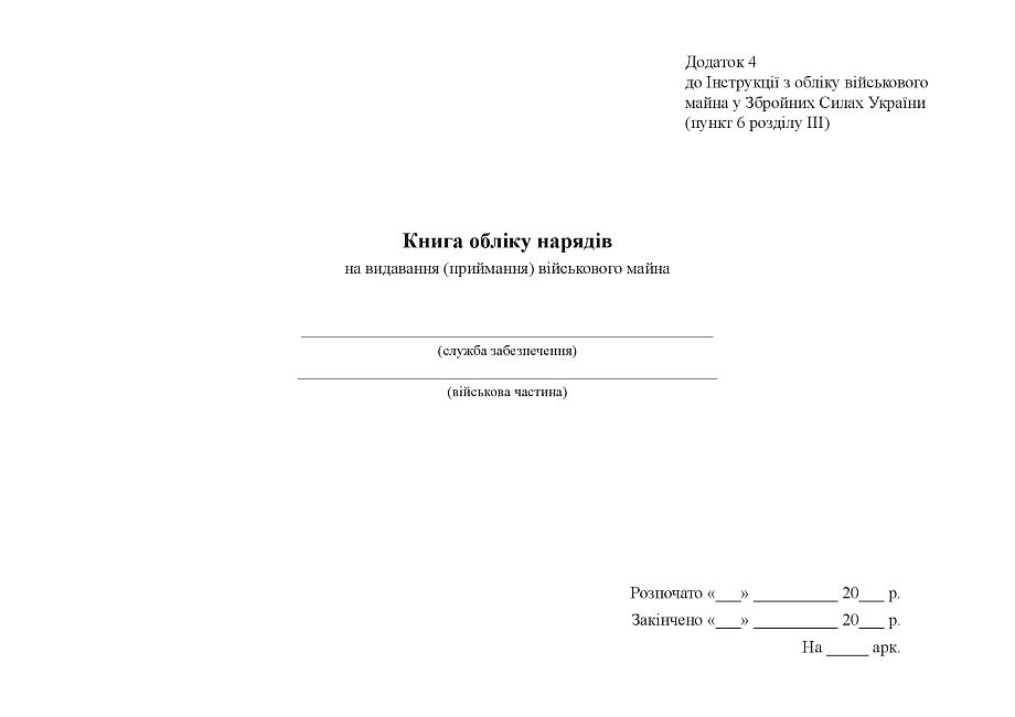 Книгу обліку нарядів на видавання (приймання) військового майна.
