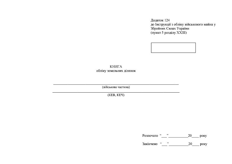Замовити з доставою Книгу обліку земельних ділянок, додаток 124.