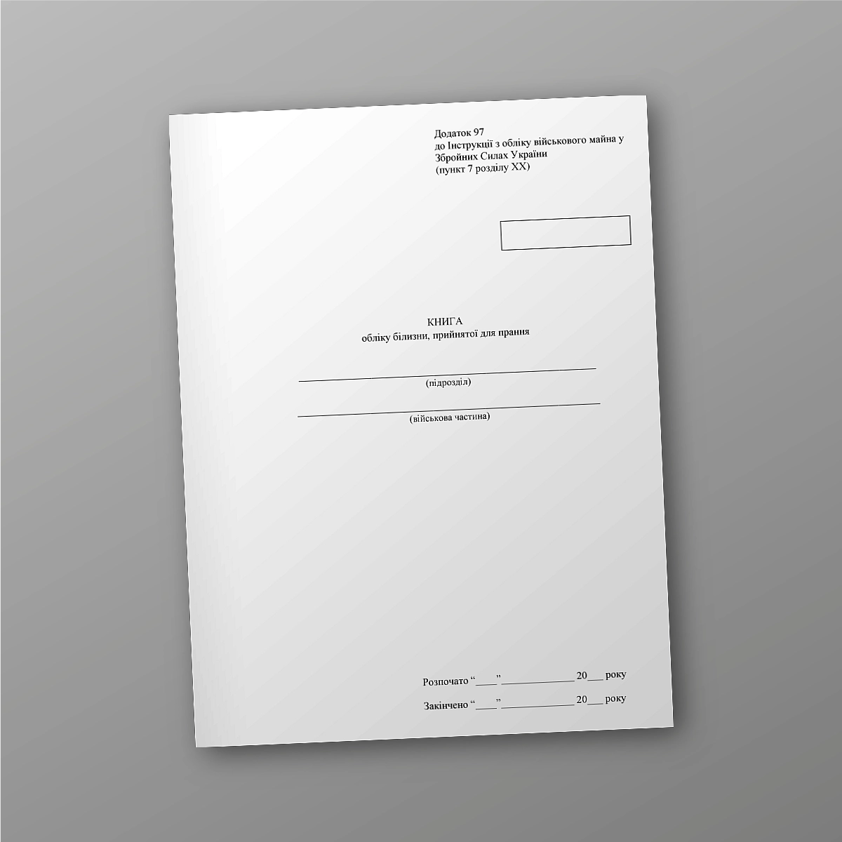 Журнал або книга військового, медичного обліку може бути виконана в м'якій або твердій обкладинці. Якщо Ви не знайшли потрібну книгу обліку для ЗСУ, МВС або кількість сторінок потрібно зробити під ваше завдання, напишіть нам на е-мейл [email protected], і ми обов`язково з Вами зв`яжемося.