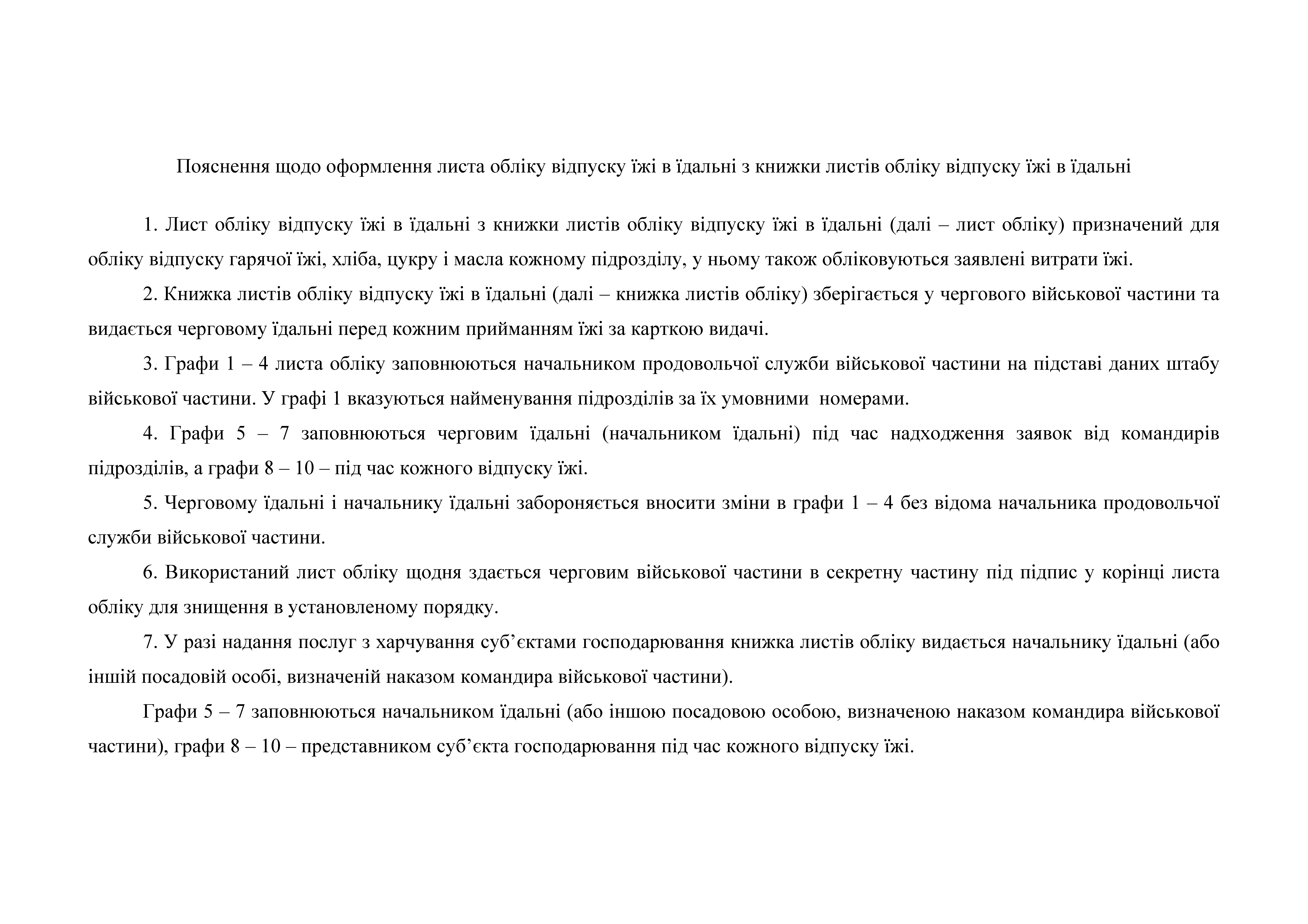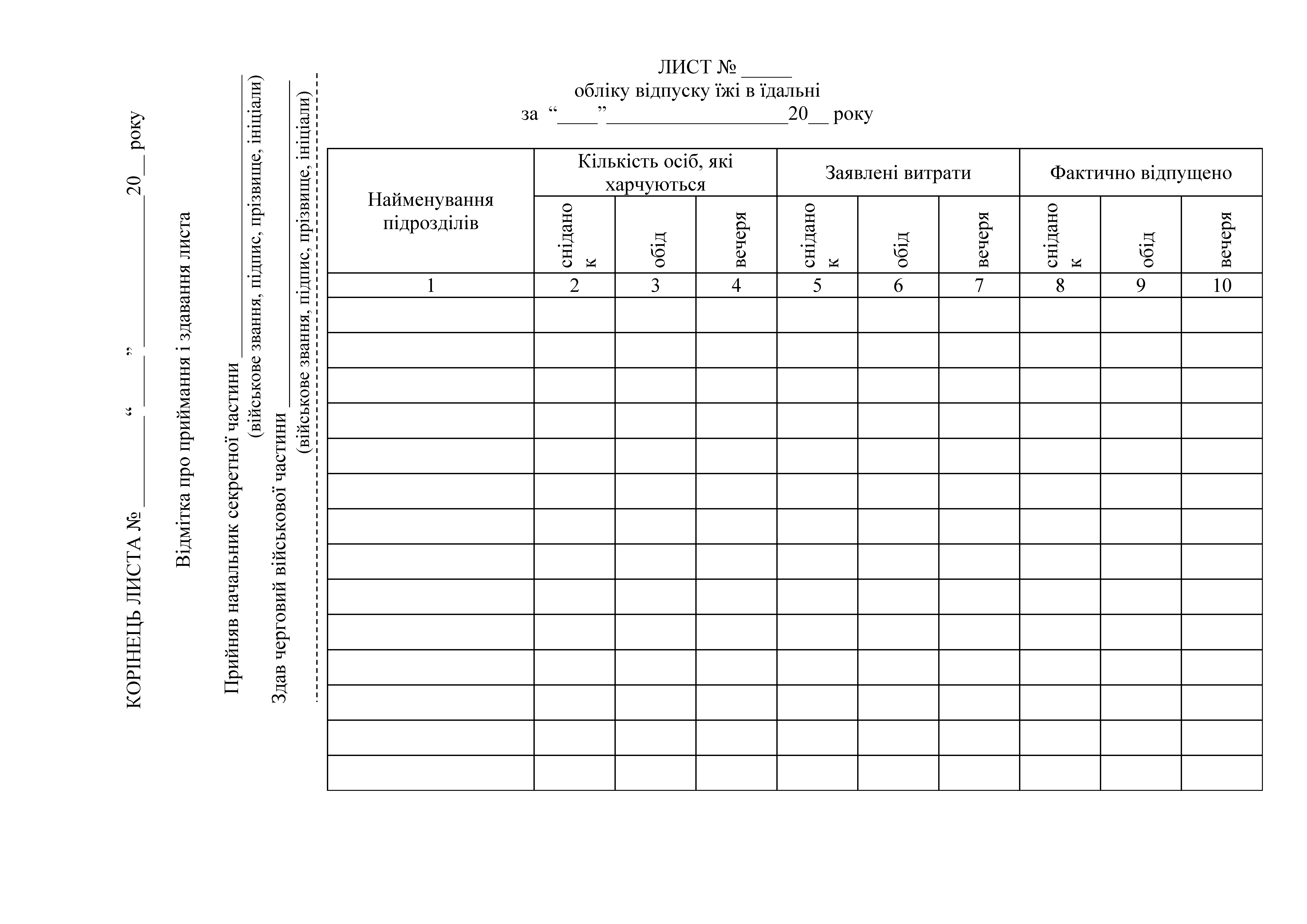 Книгу листів обліку відпуску їжі в їдальні.