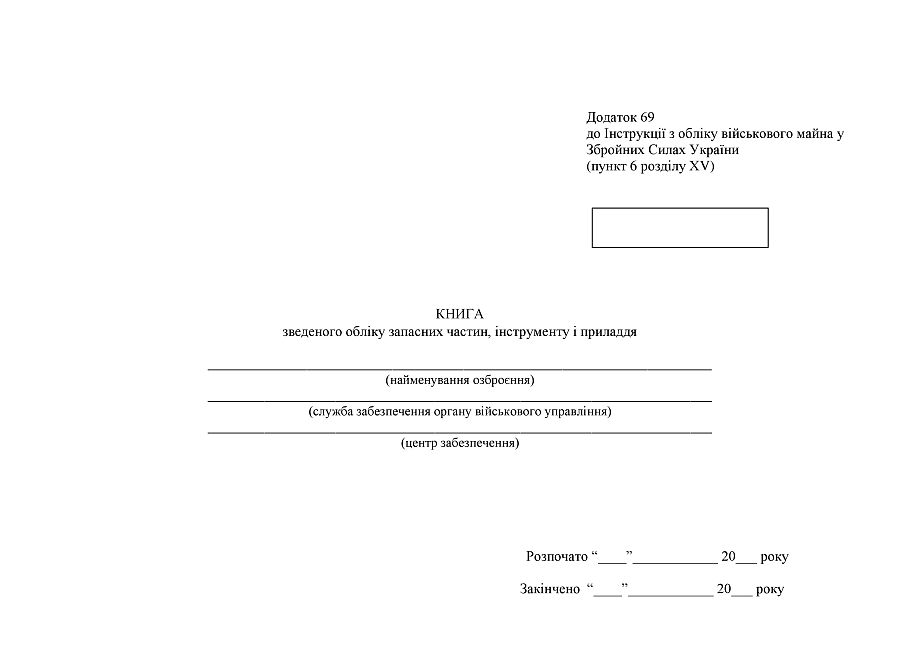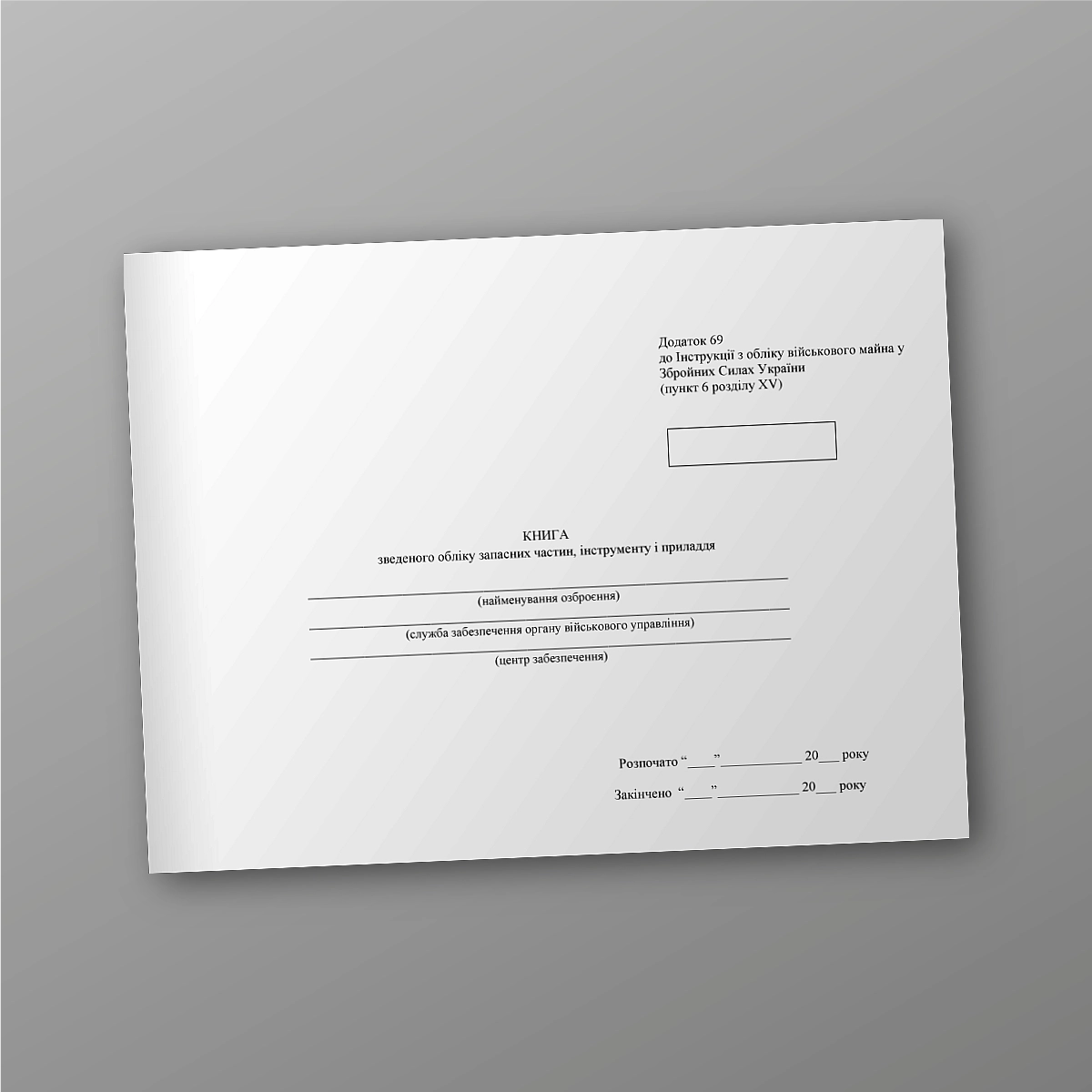 Купити Книгу зведеного обліку запасних частин інструменту і приладдя, додаток 69. .