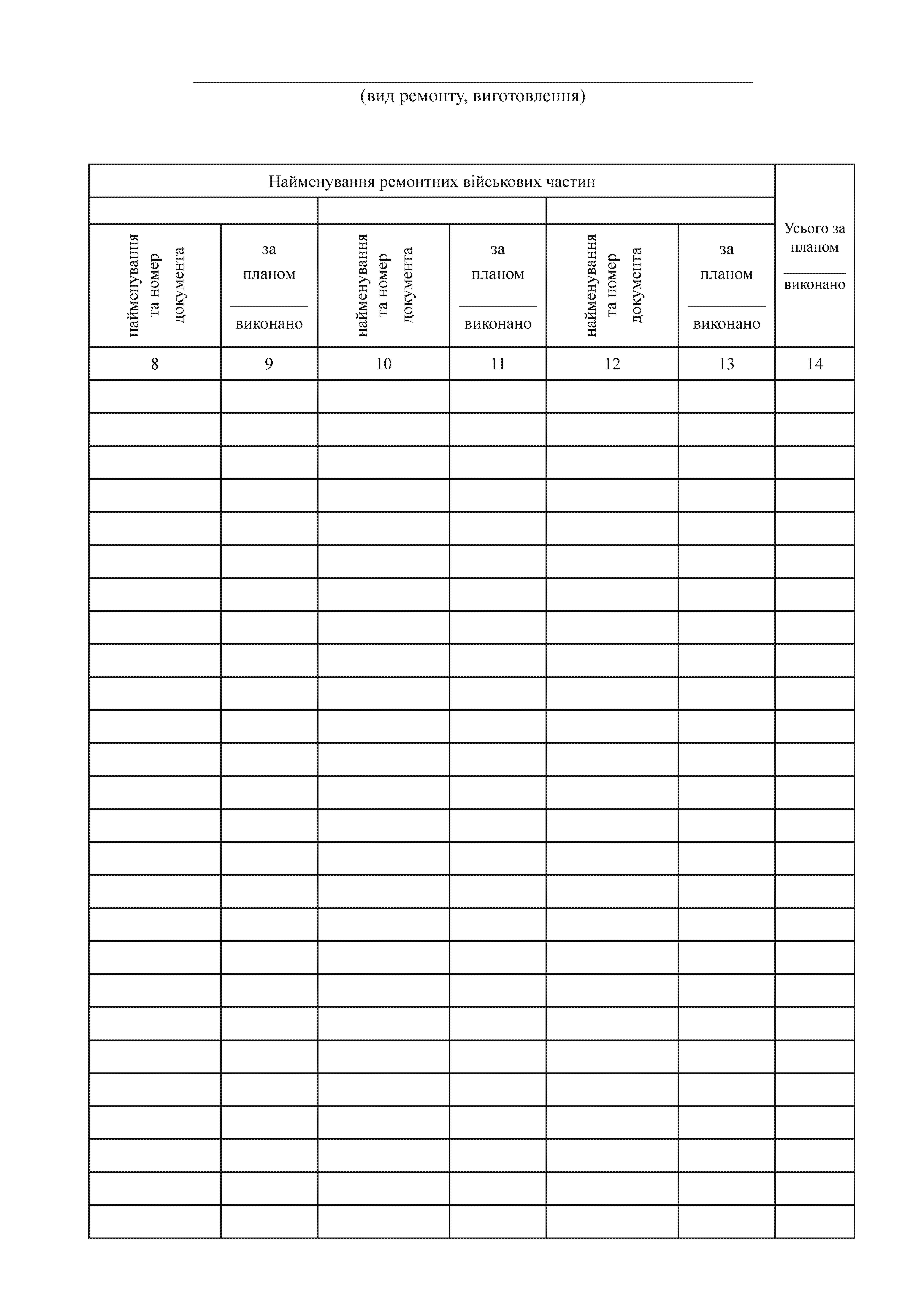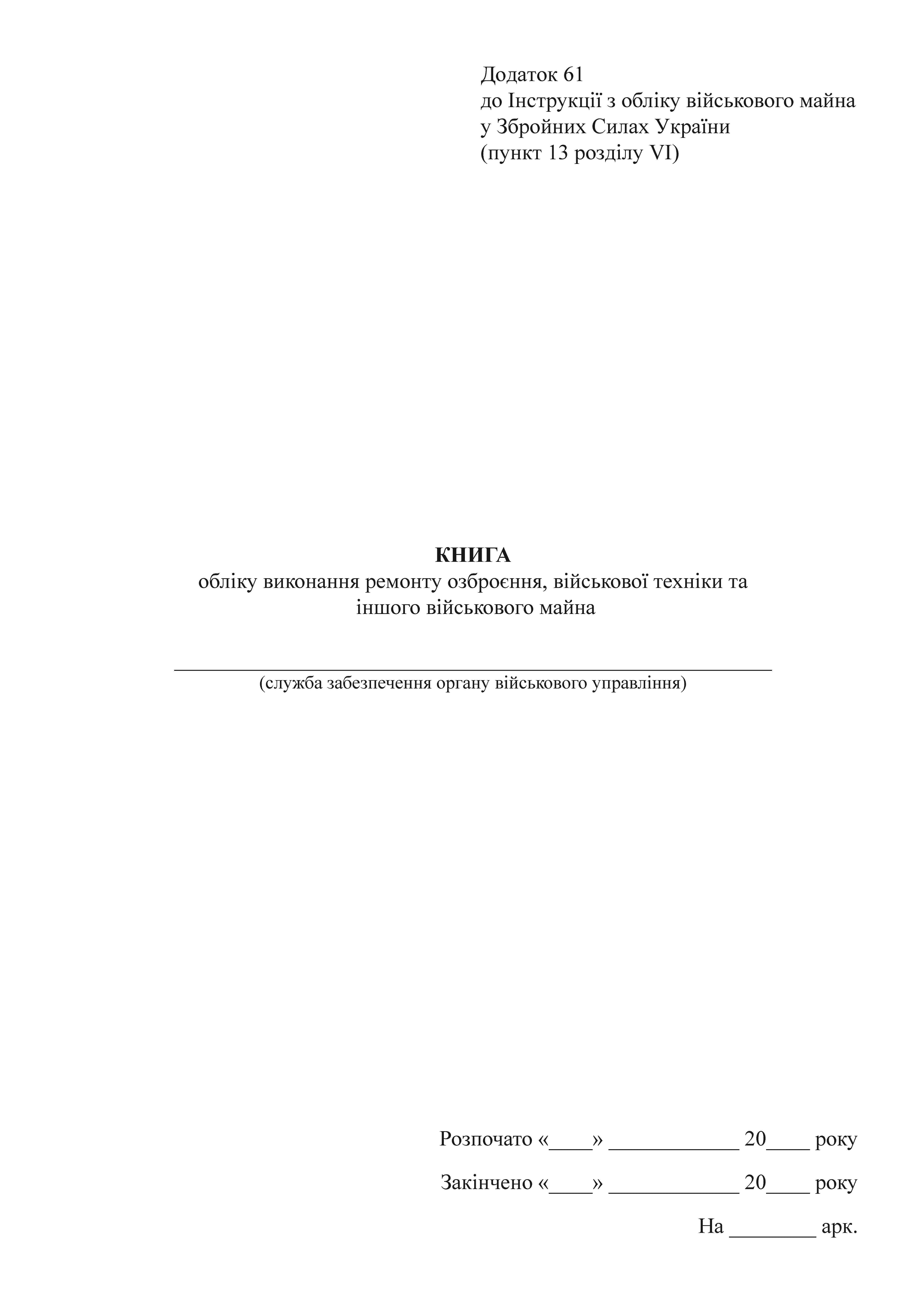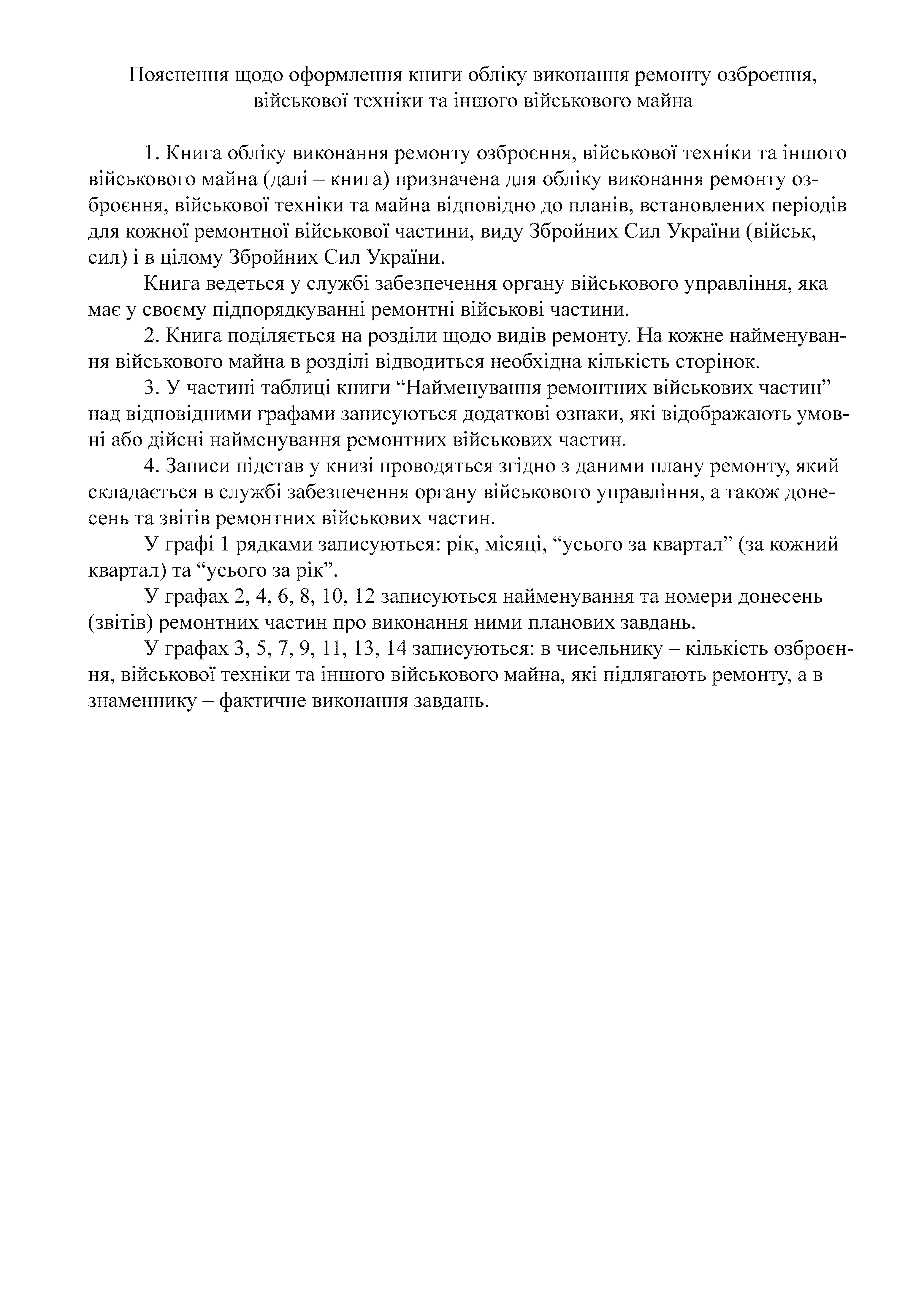 Книгу обліку виконання ремонту озброєння військової техніки та іншого військового майна.