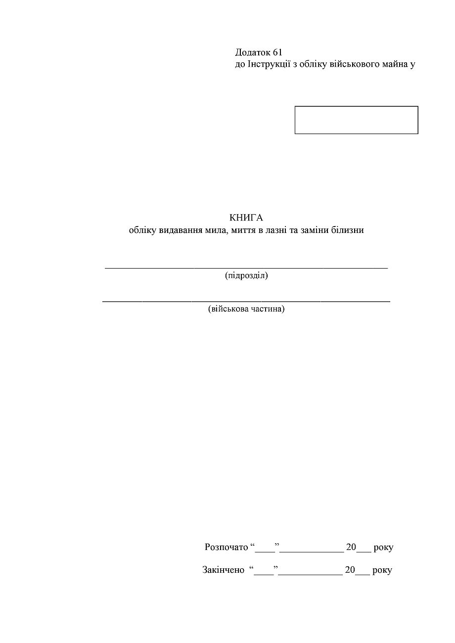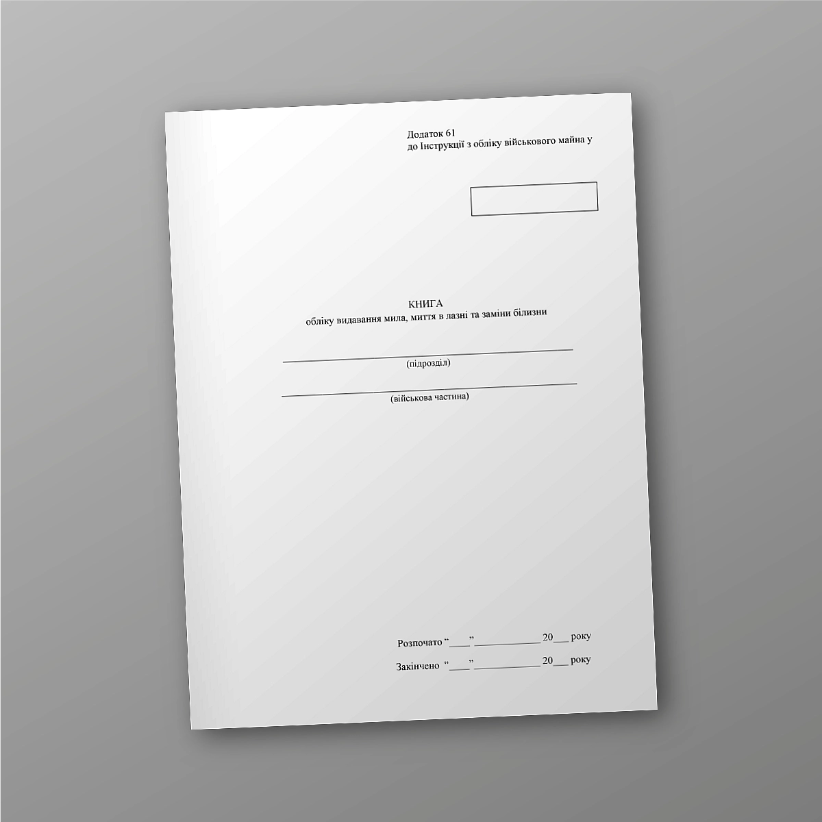Купити Книгу обліку видавання мила миття в лазні та заміни білизни, додаток 61.