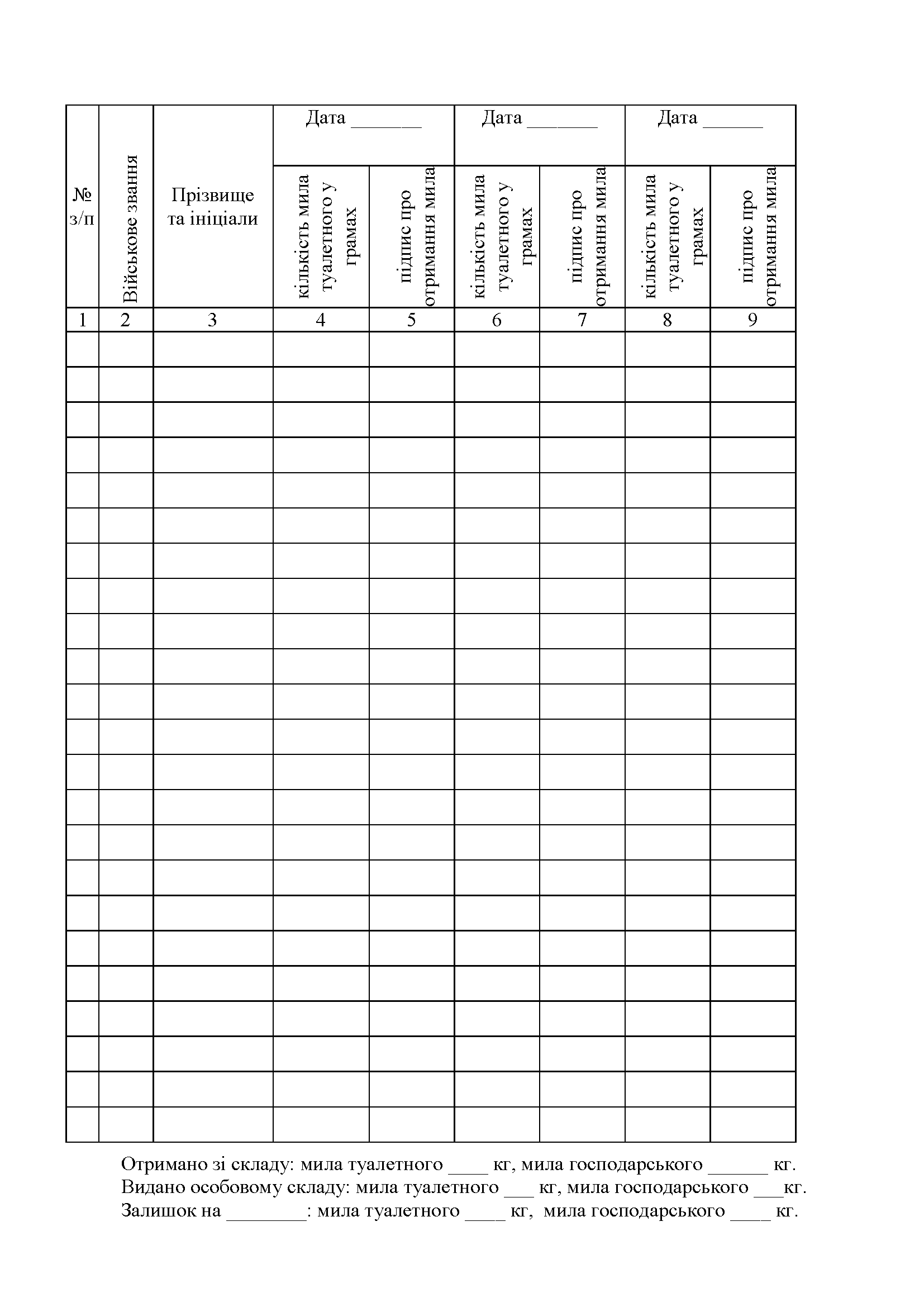 Книгу обліку видавання мила миття в лазні та заміни білизни.