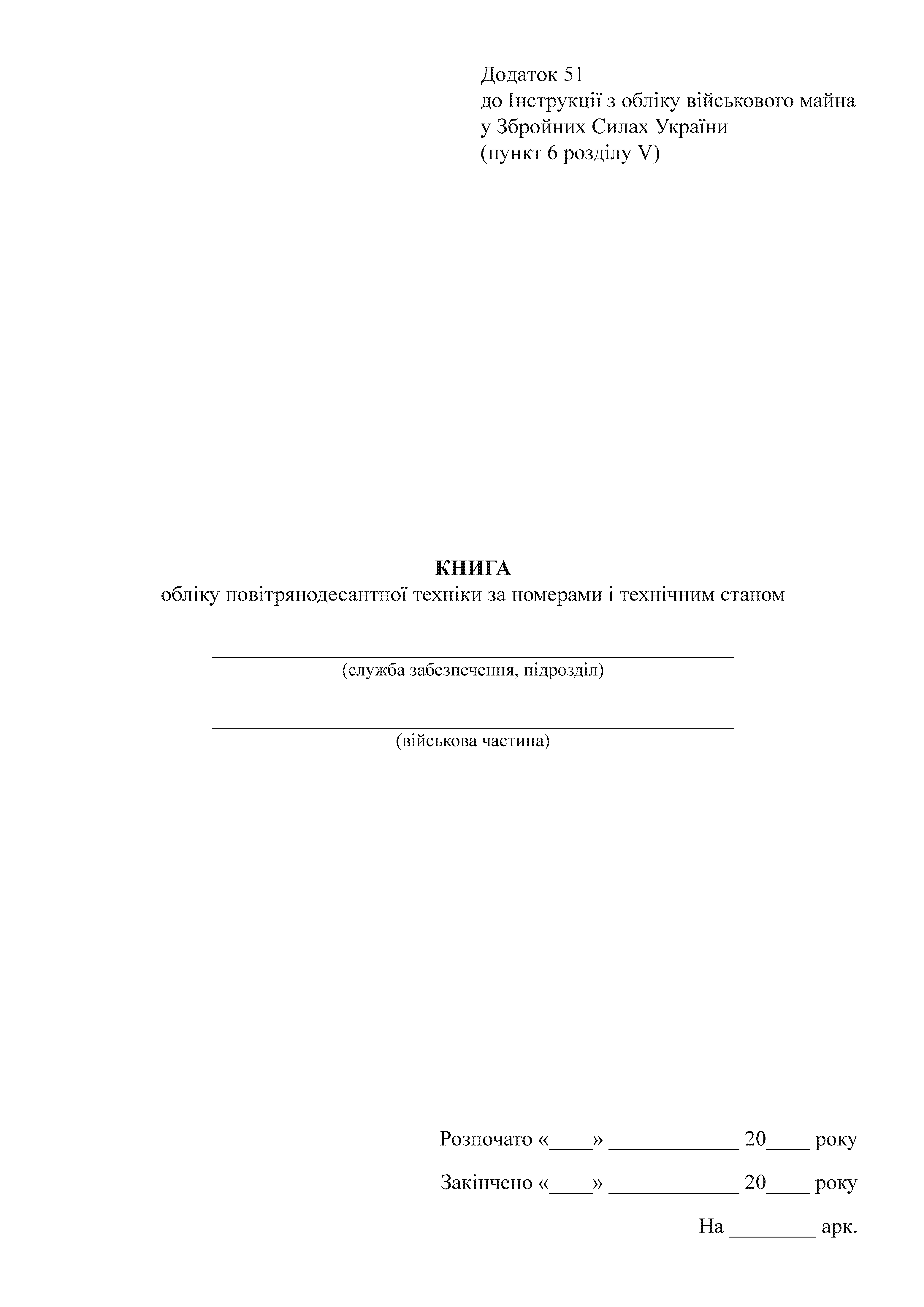 Купити Книгу обліку повітрянодесантної техніки за номерами і технічним станом, додаток 50 (Нова редакція Додаток 51). .