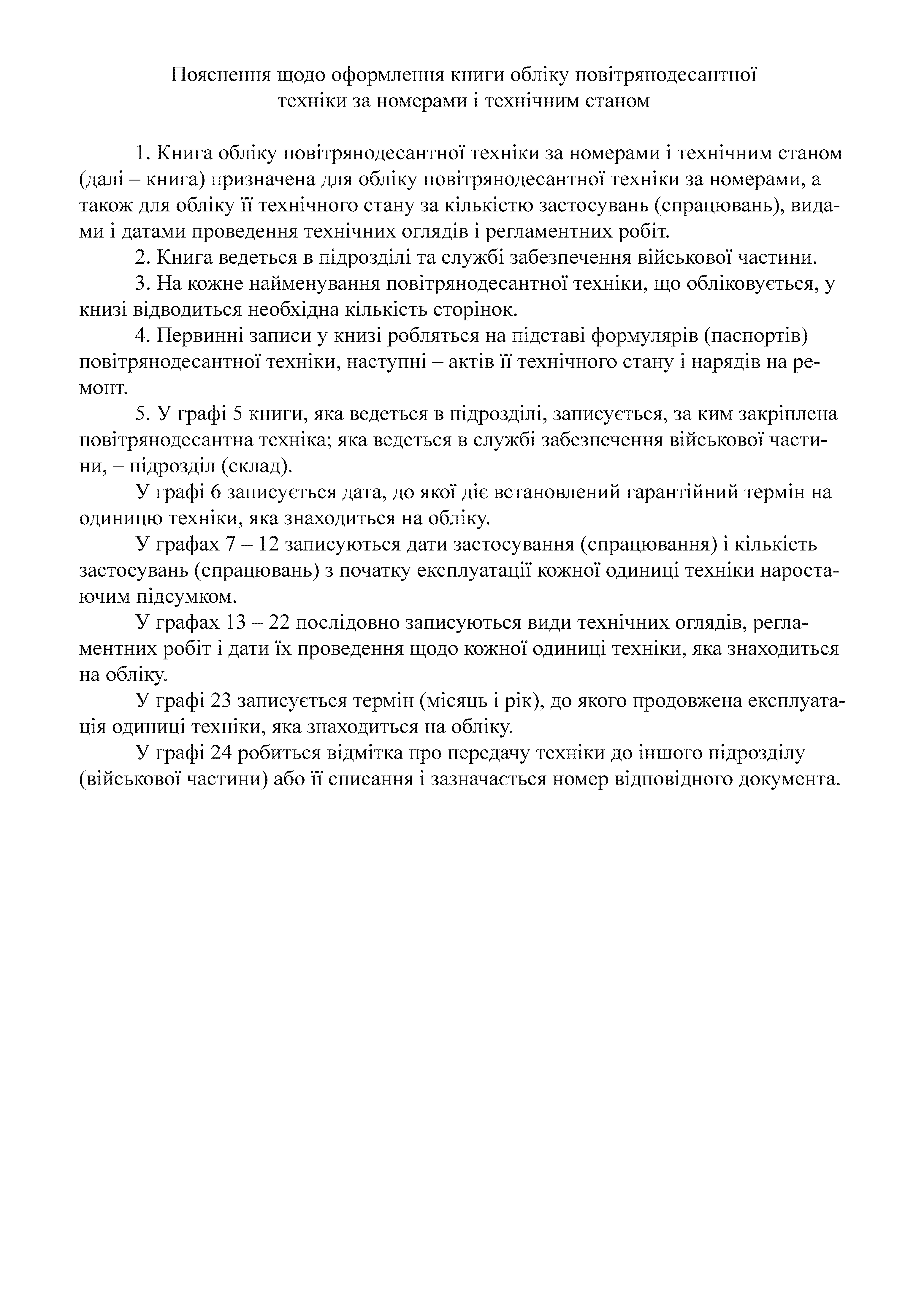 Книгу обліку повітрянодесантної техніки за номерами і технічним станом.