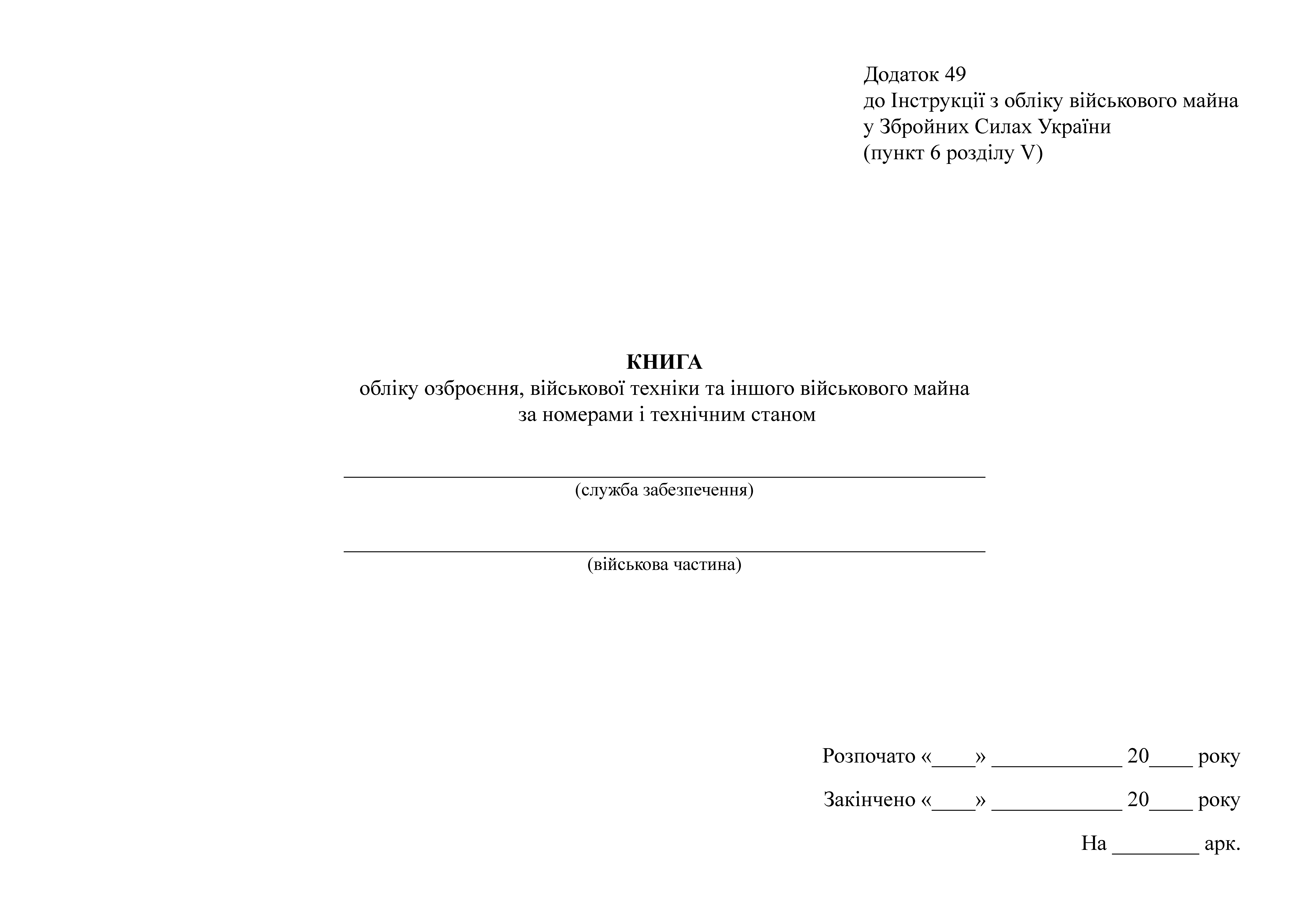 Купити Книгу обліку озброєння військової техніки та іншого військового майна за номерами і технічним станом, додаток 48 (Нова редакція 49). .