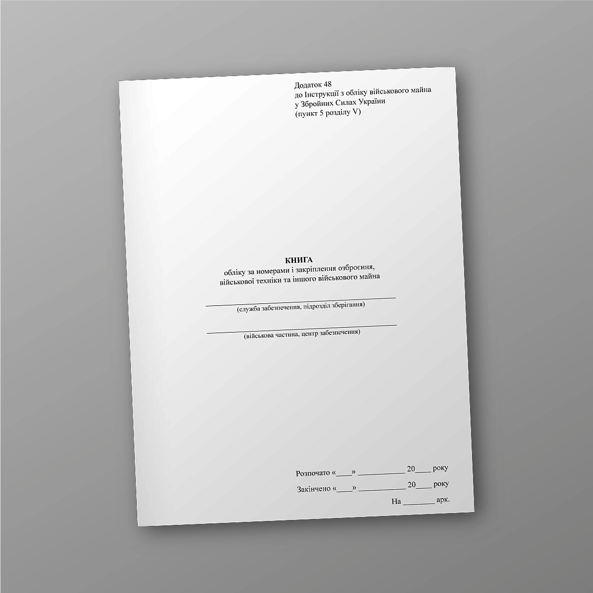 Купити Книгу обліку за номерами і закріплення озброєння військової техніки та іншого військового майна, додаток 47 (нова редакція додаток 48). .