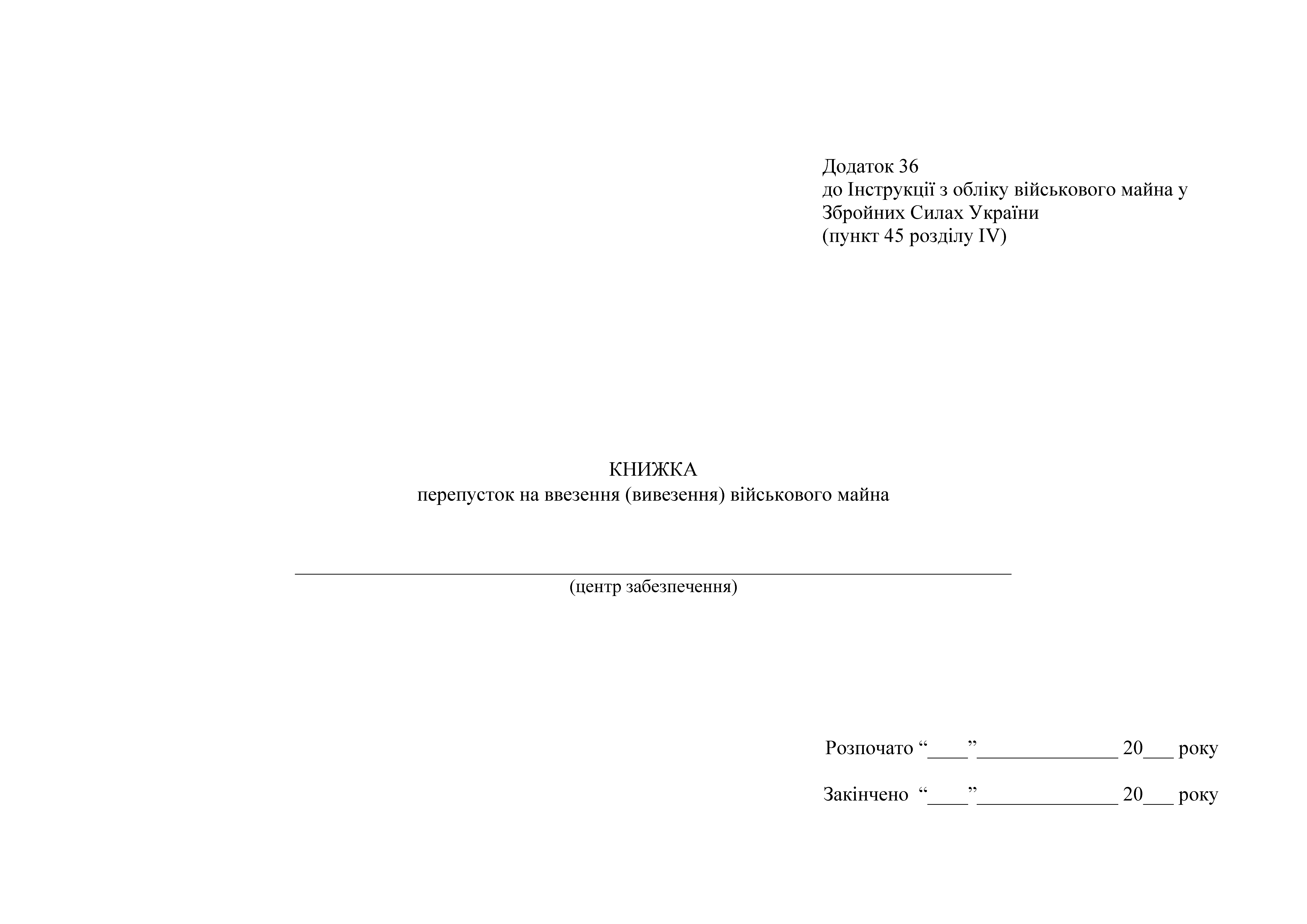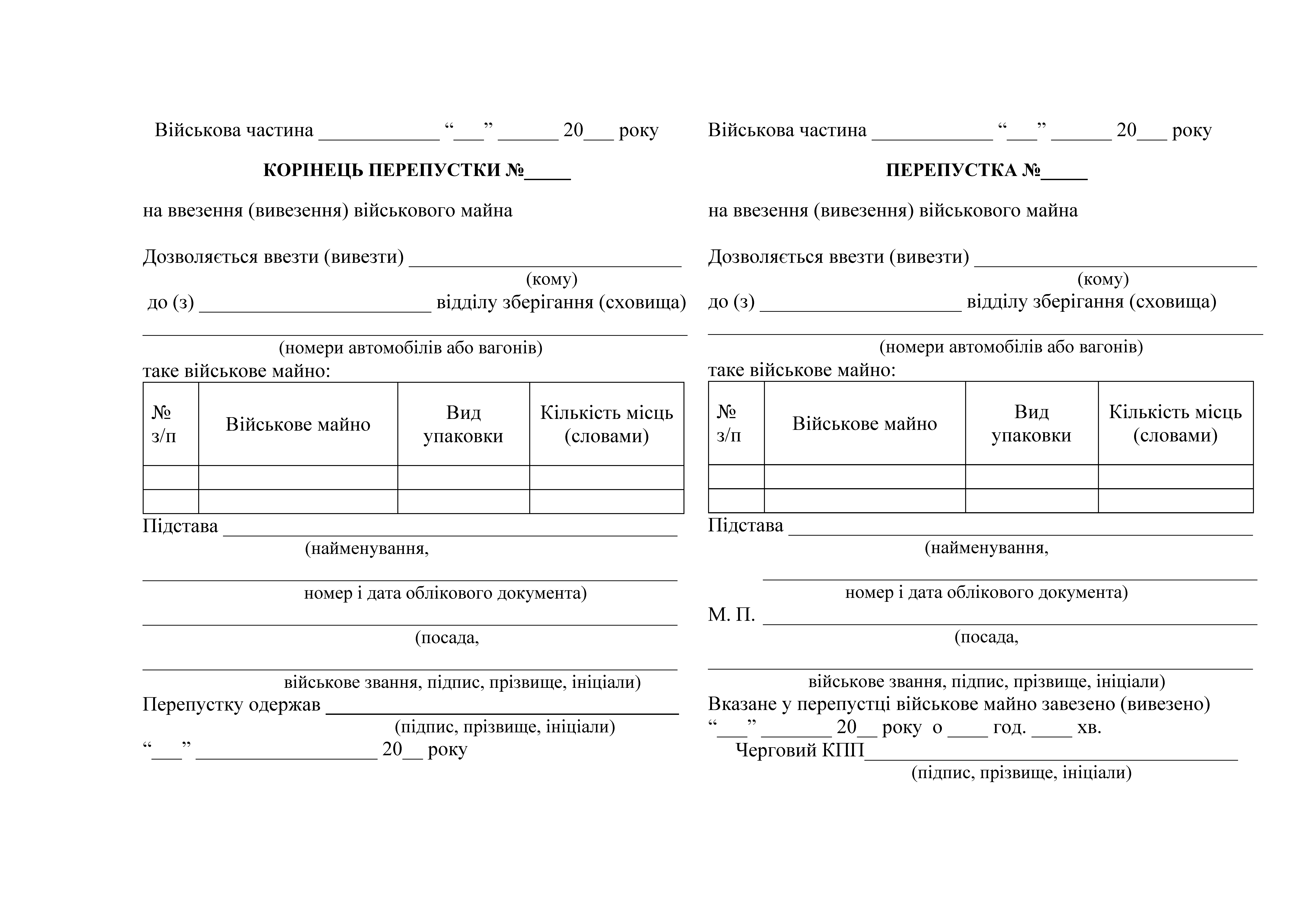 Книжка перепусток на ввезення (вивезення) військового майна.