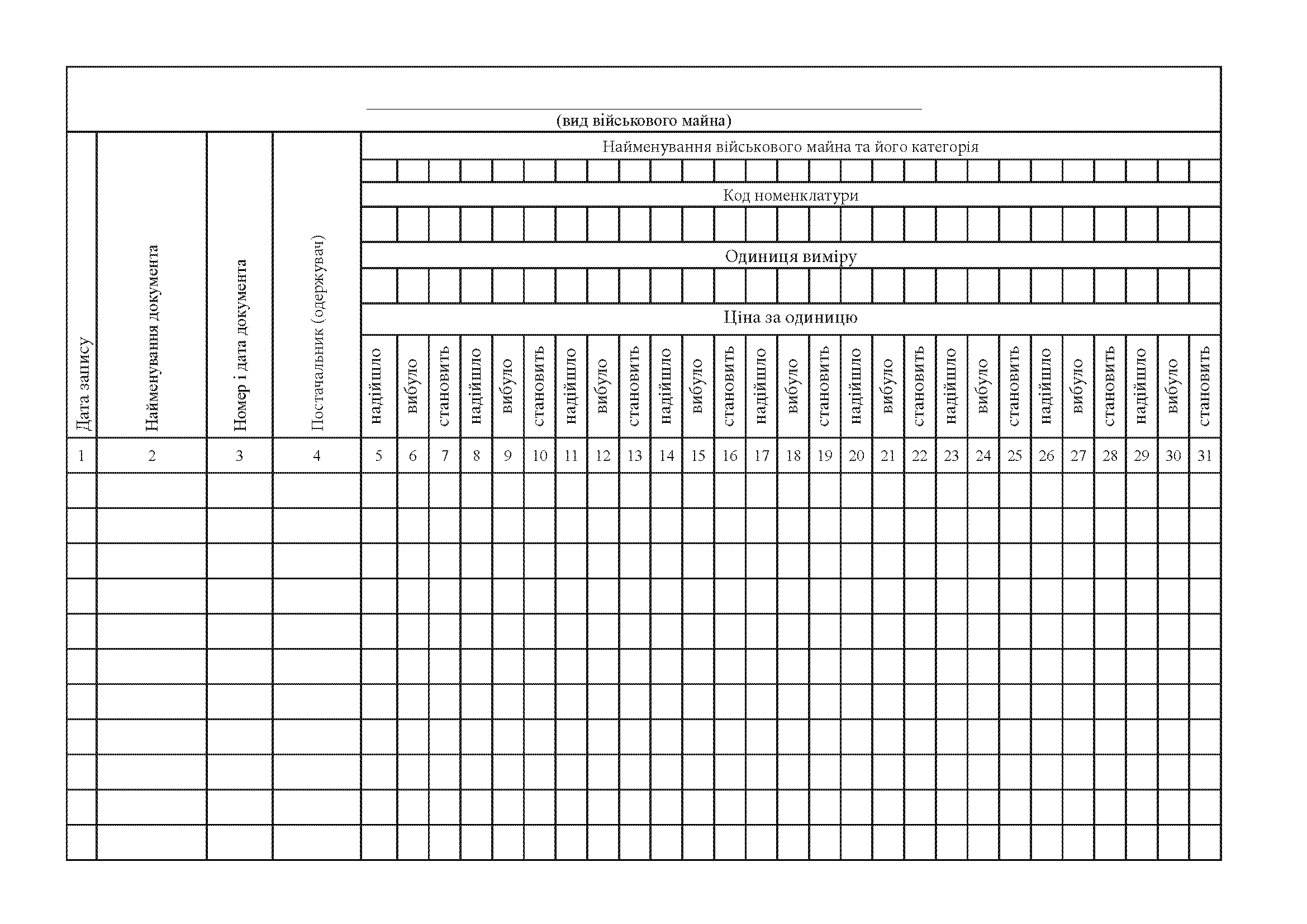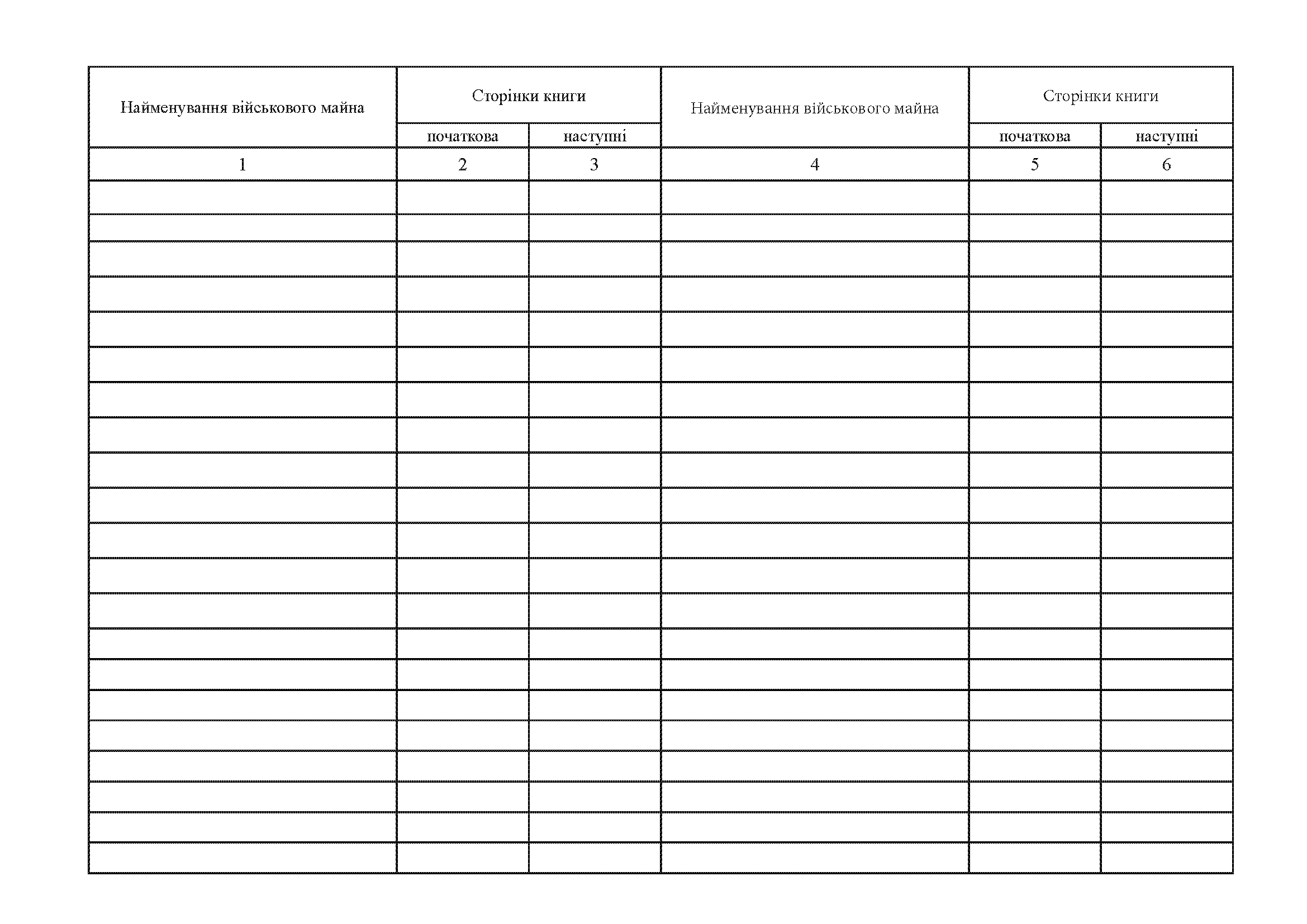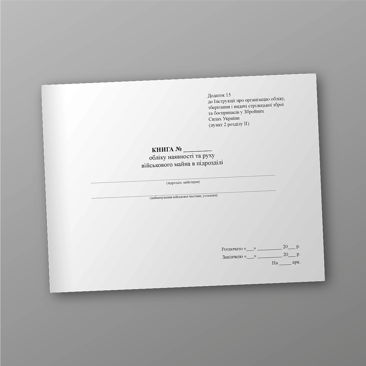Книгу №_ обліку наявності та руху військового майна в підрозділі,.