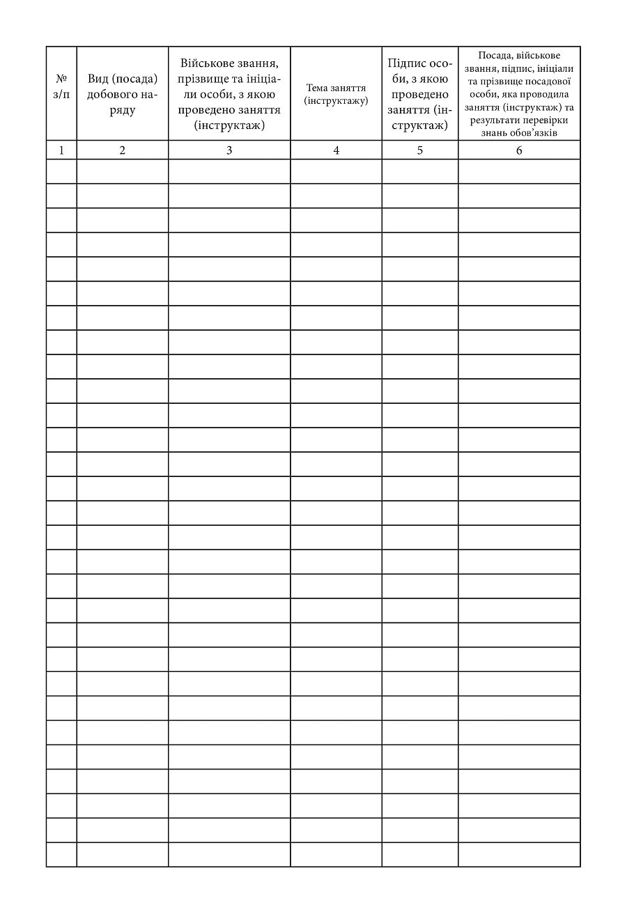 Журнал обліку занять (інструктажів) з особовим складом добового наряду.