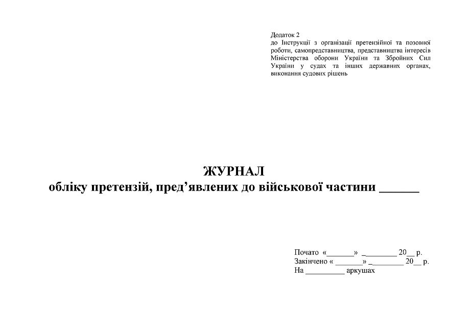 Журнал обліку претензій пред’явлених ДО ВЧ.