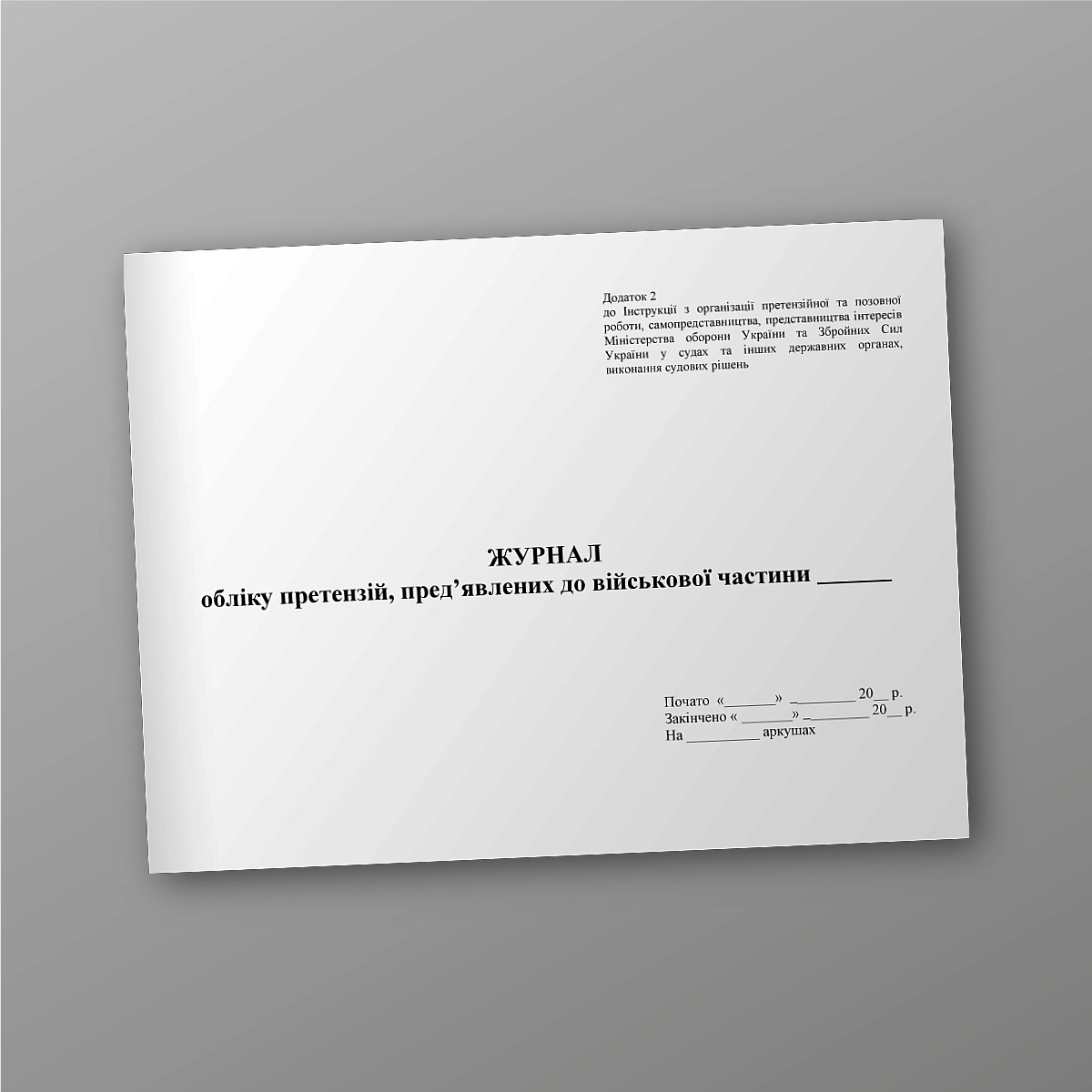 Журнал або книга військового, медичного обліку може бути виконана в м'якій або твердій обкладинці. Якщо Ви не знайшли потрібну книгу обліку для ЗСУ, МВС або кількість сторінок потрібно зробити під ваше завдання,напишіть нам на e-mail [email protected], і ми обов'язково зв'яжемося з Вами.