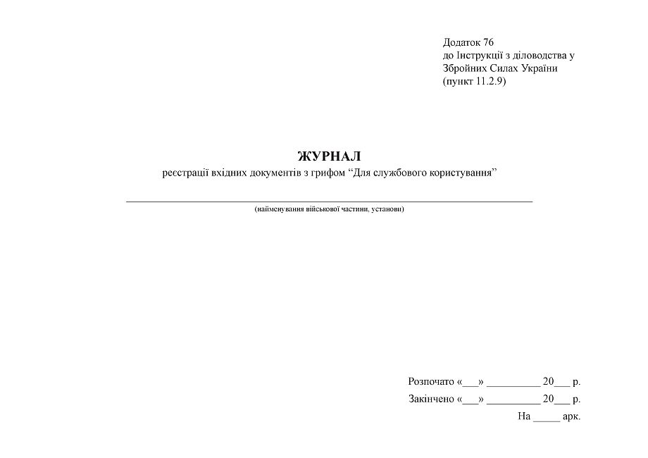 Купити Журнал реєстрації вхідних документів з грифом “Для службового користування”. .