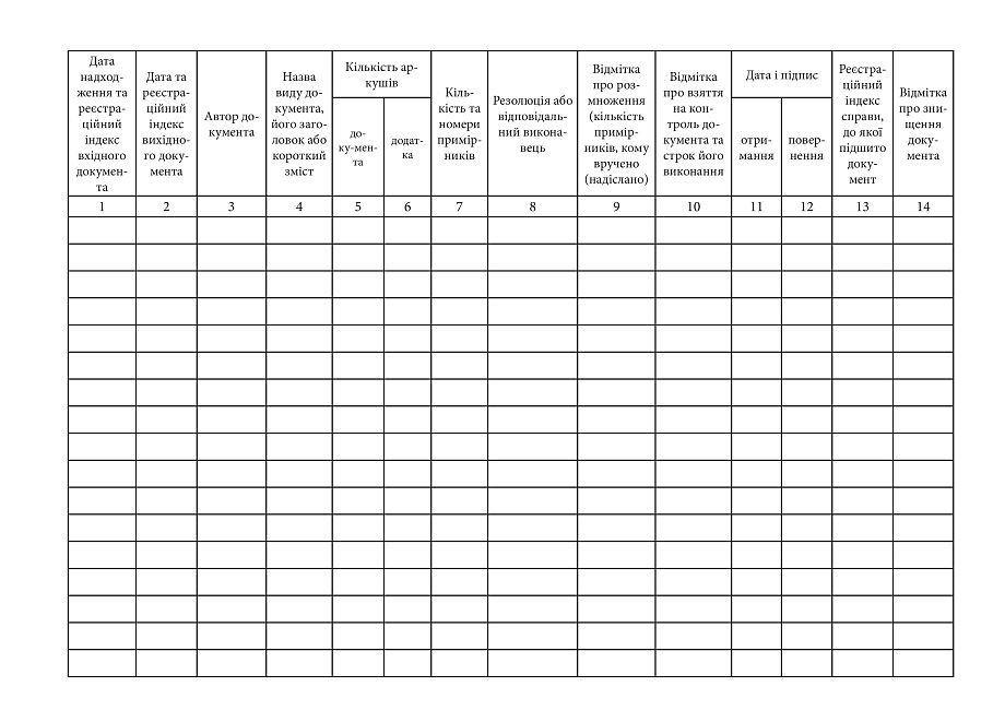 Журнал реєстрації вхідних документів з грифом “Для службового користування”.