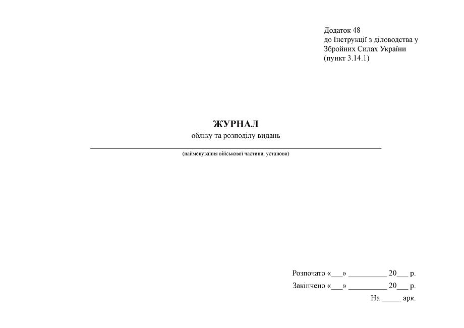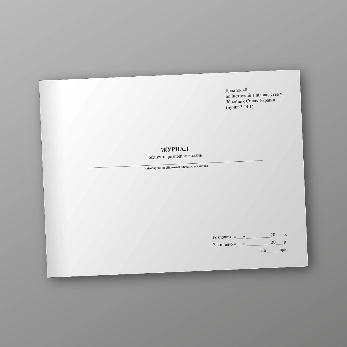 Журнал або книга військового, медичного обліку може бути виконана в м'якій або твердій обкладинці. Якщо Ви не знайшли потрібну книгу обліку для ЗСУ, МВС або кількість сторінок потрібно зробити під ваше завдання,напишіть нам на e-mail [email protected], і ми обов'язково зв'яжемося з Вами.