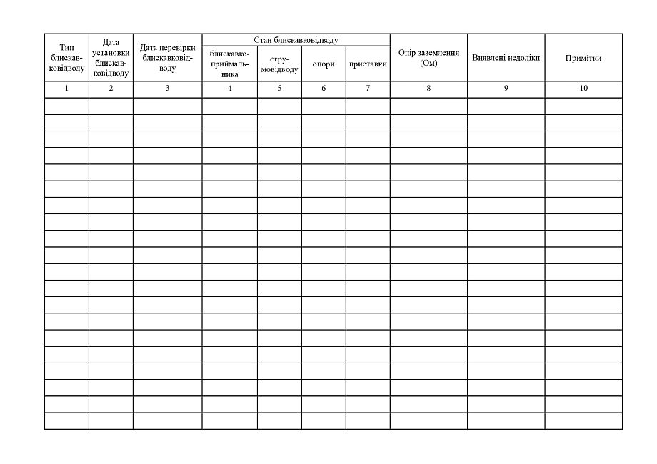 Журнал обліку стану стрижневих блискавковідводів.