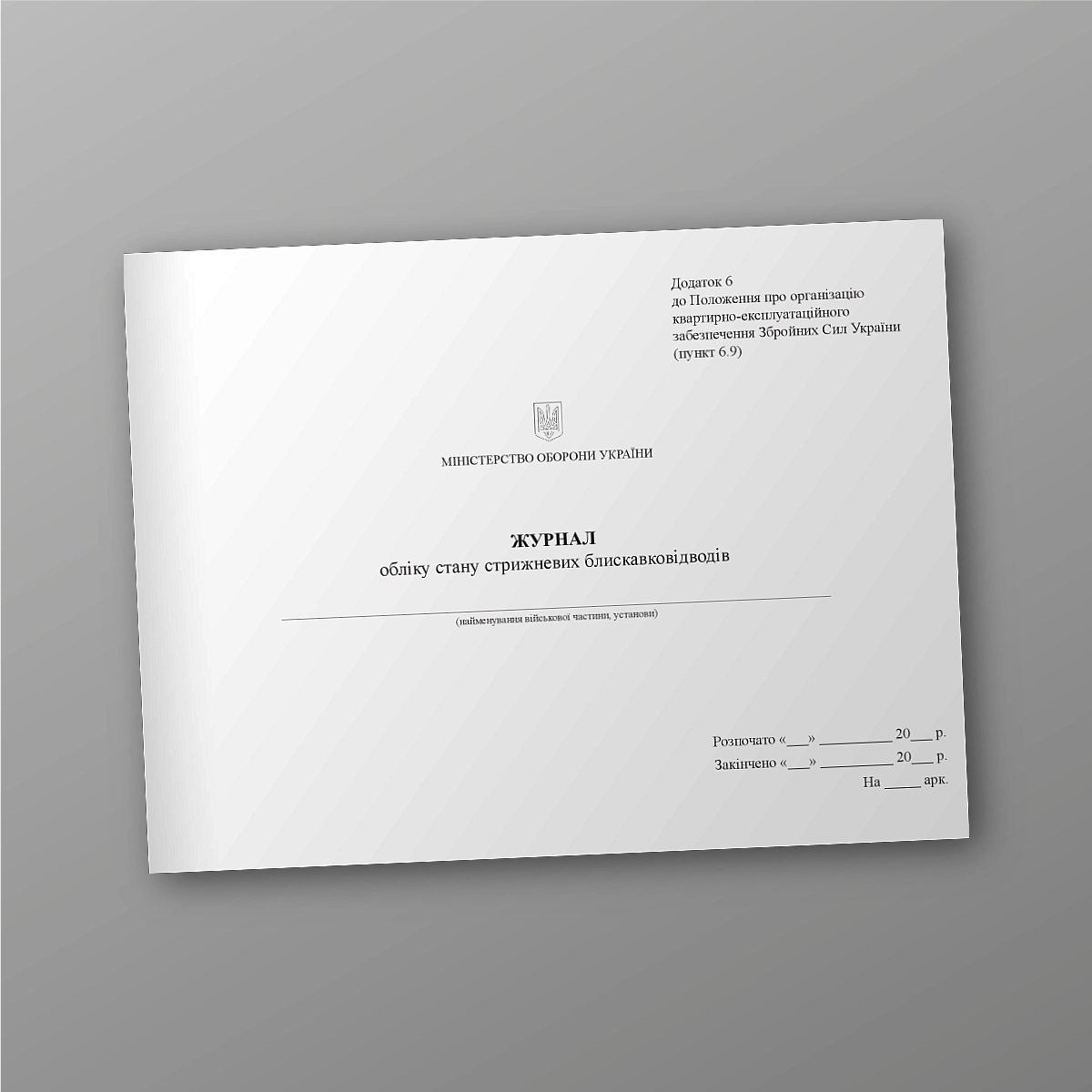 Журнал або книга військового, медичного обліку може бути виконана в м'якій або твердій обкладинці. Якщо Ви не знайшли потрібну книгу обліку для ЗСУ, МВС або кількість сторінок потрібно зробити під ваше завдання,напишіть нам на e-mail [email protected], і ми обов'язково зв'яжемося з Вами.