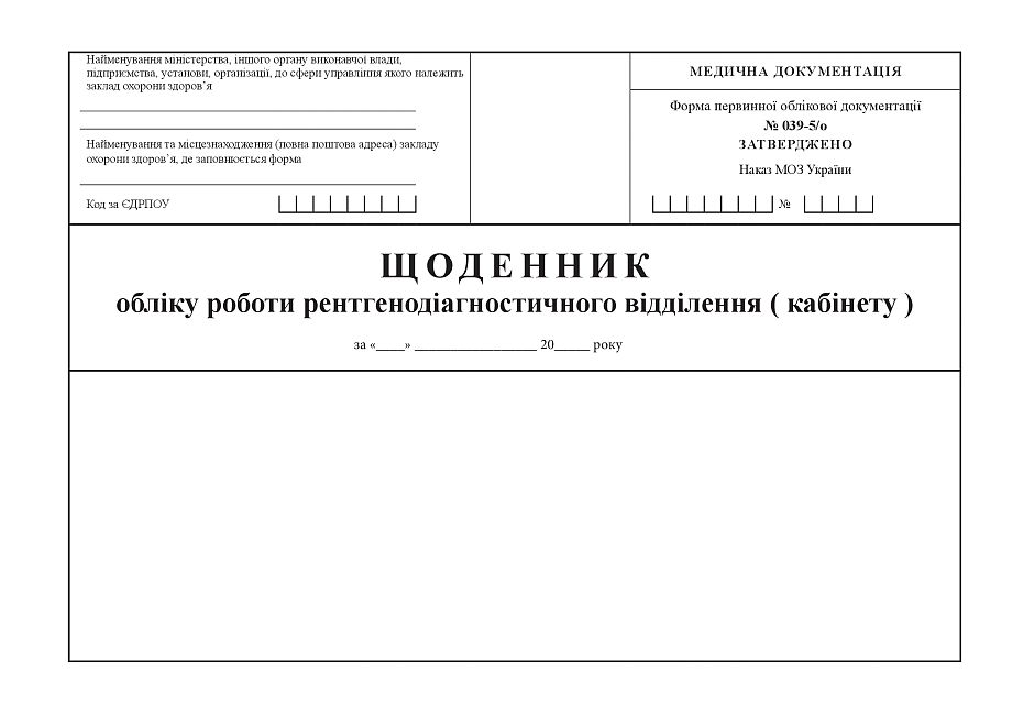 Замовити Щоденник обліку роботи рентгенодіагностичного відділення (кабінету).