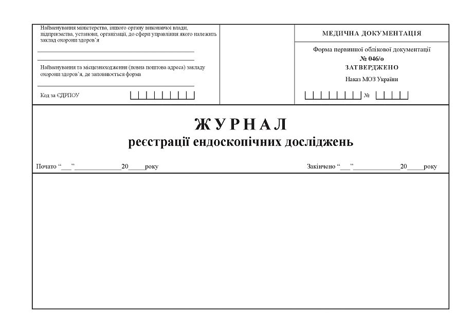 Замовити Журнал реєстрації ендоскопічних досліджень.