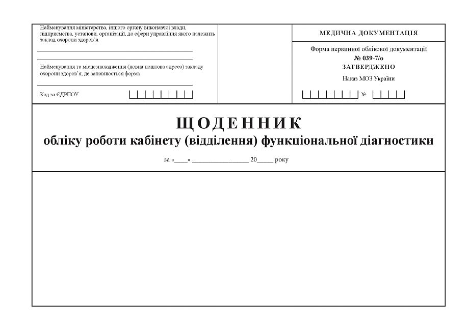 Замовити Щоденник обліку роботи кабінету (відділення) функціональної діагностики.