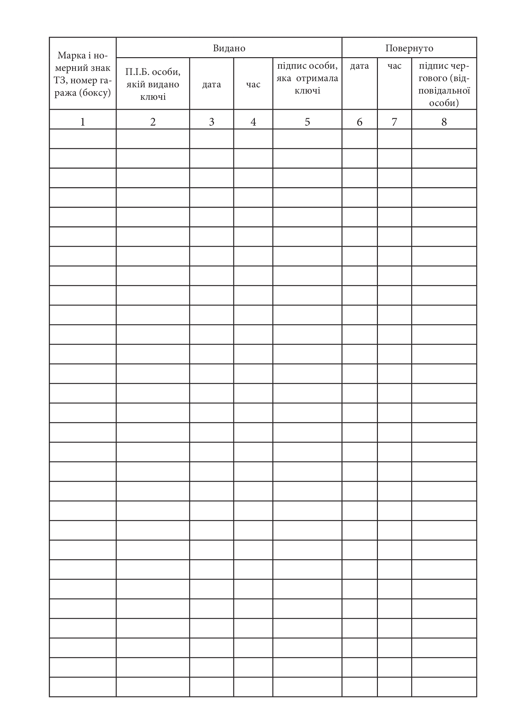 Журнал видачі та повернення ключів транспортного засобу.