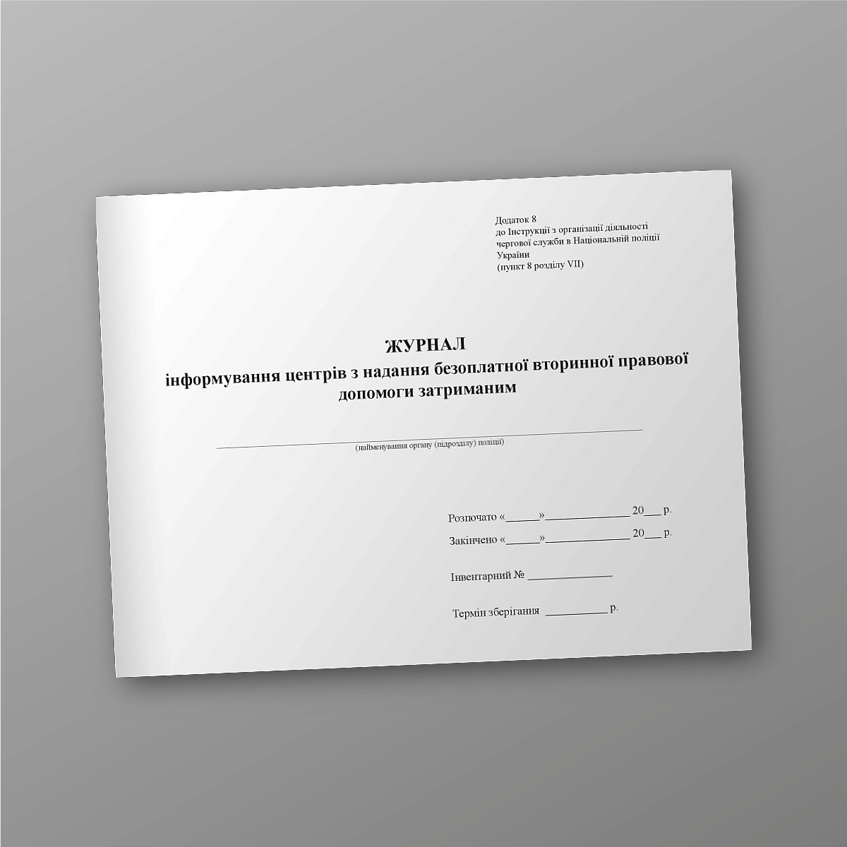 Купити Журнал інформування центрів з надання безоплатної вторинної правової допомоги затриманим.
