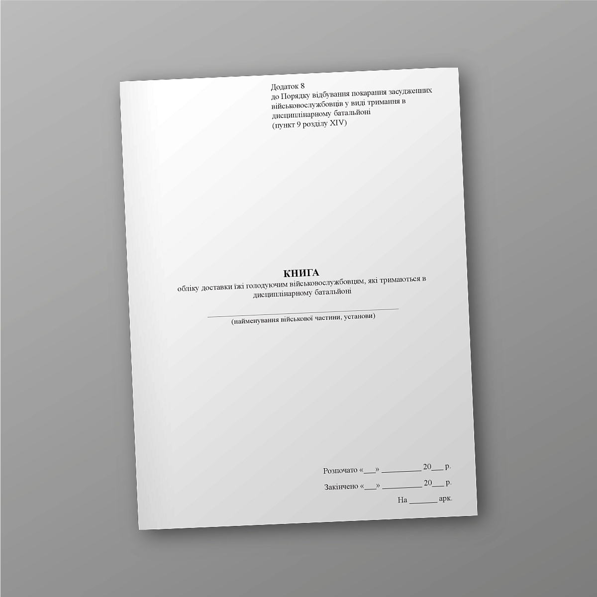 Купити Книгу обліку доставки їжі голодуючим військовослужбовцям, які тримаються в дисциплінарному батальйоні.