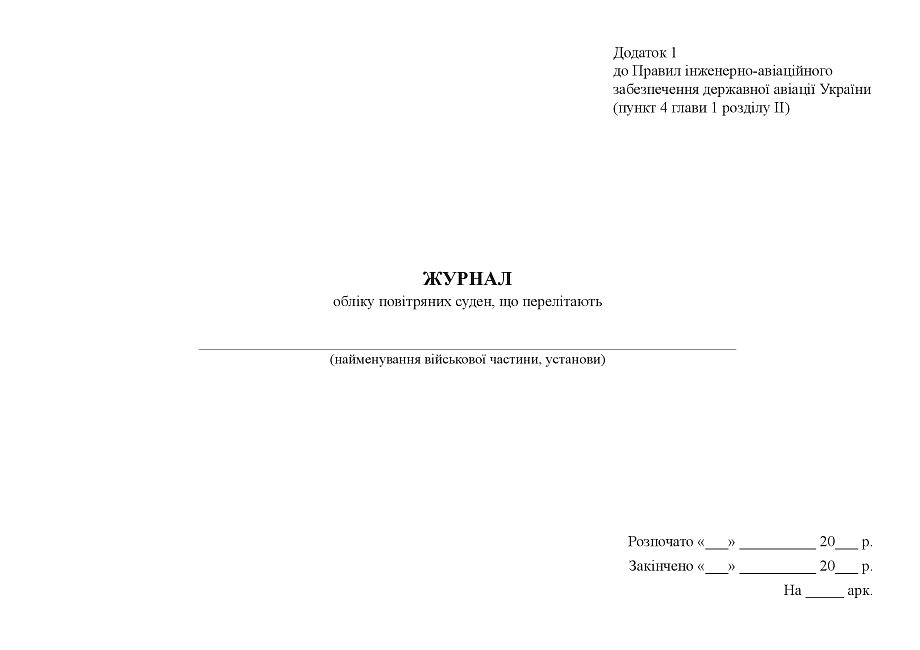 Купити Журнал обліку повітряних суден, що перелітають.