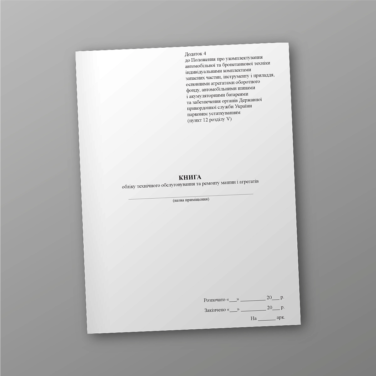 Купити Книгу обліку технічного обслуговування та ремонту машин і агрегатів.