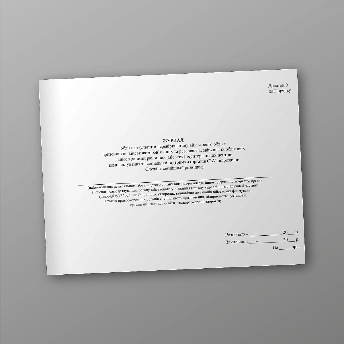 Журнал обліку результатів перевірки стану військового обліку призовників, військовозобов’язаних та резервістів, звіряння їх облікових даних з даними районних (міських) територіальних центрів