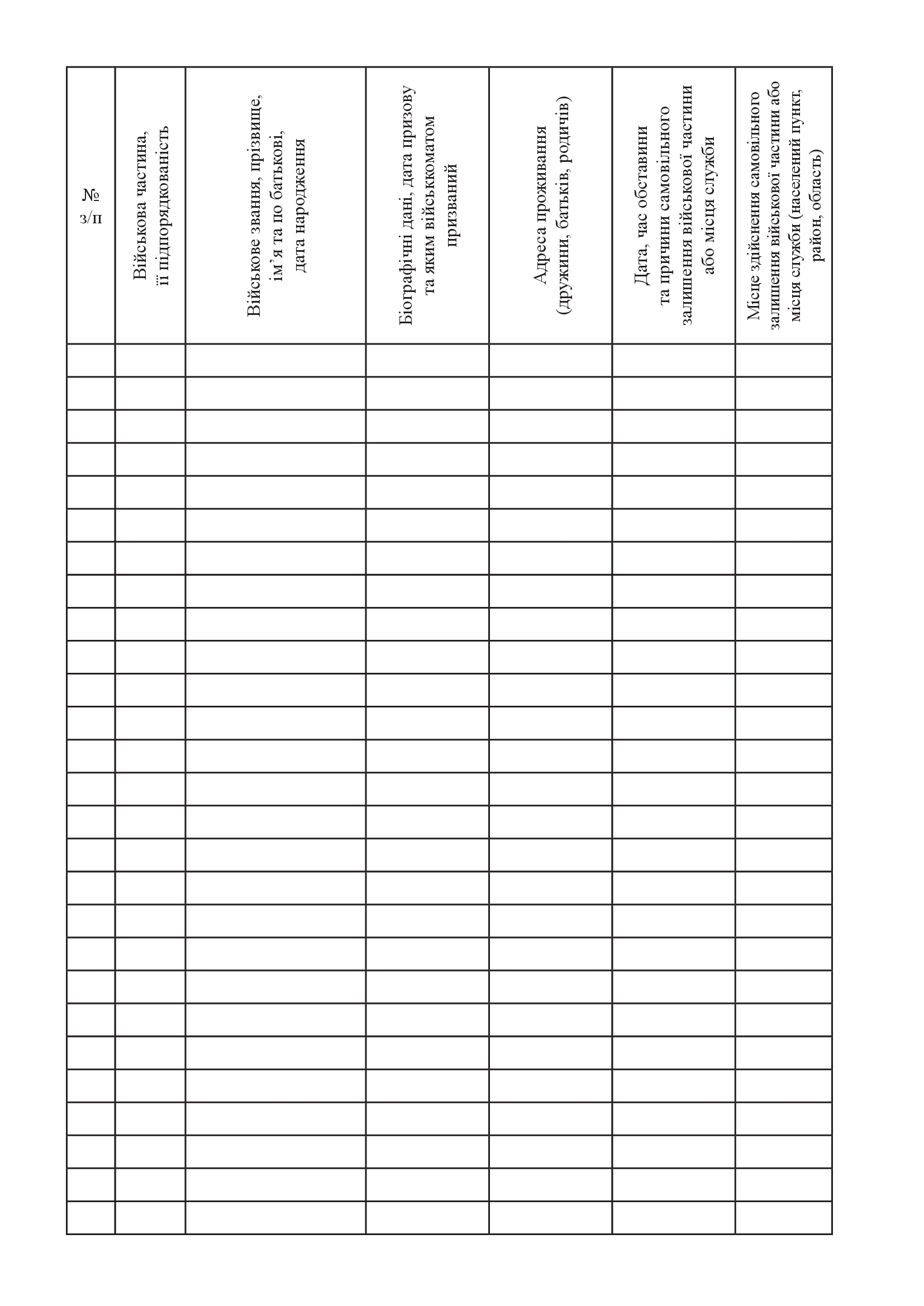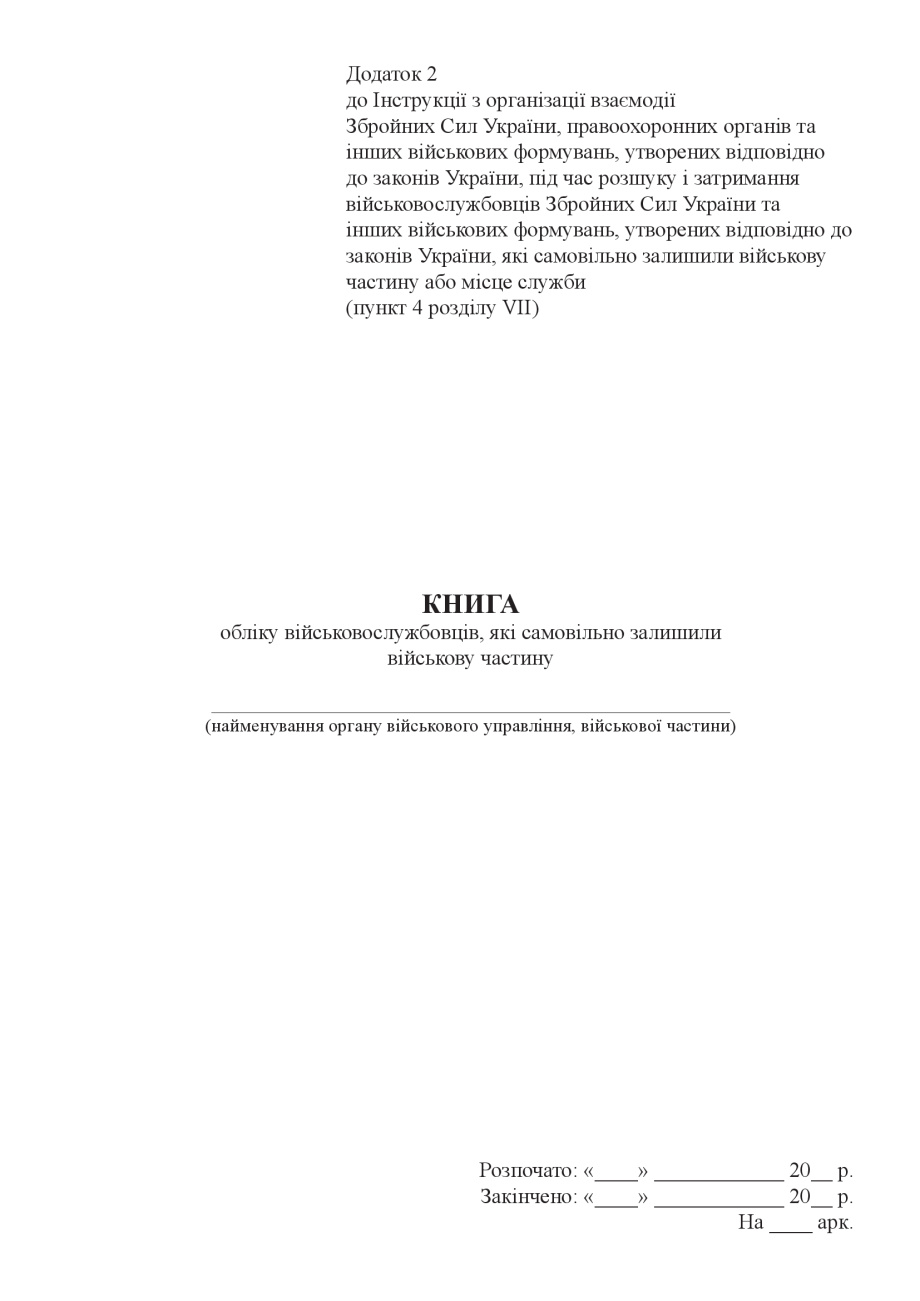 Книгу обліку військовослужбовців, які самовільно залишили військову частину.