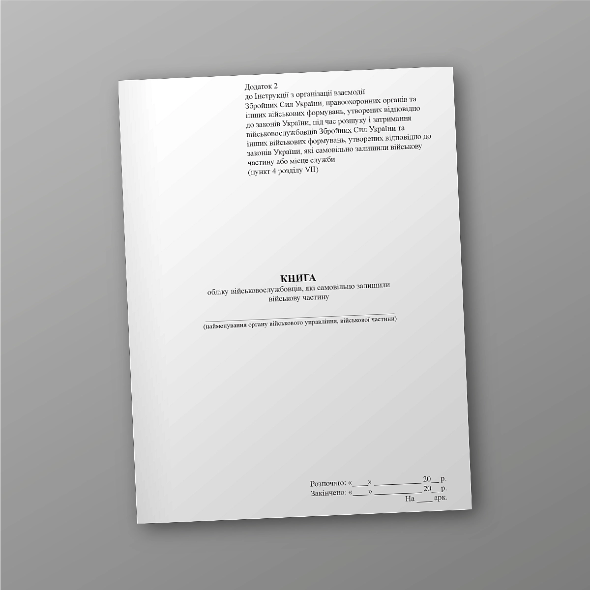 Купити Книгу обліку військовослужбовців, які самовільно залишили військову частину.
