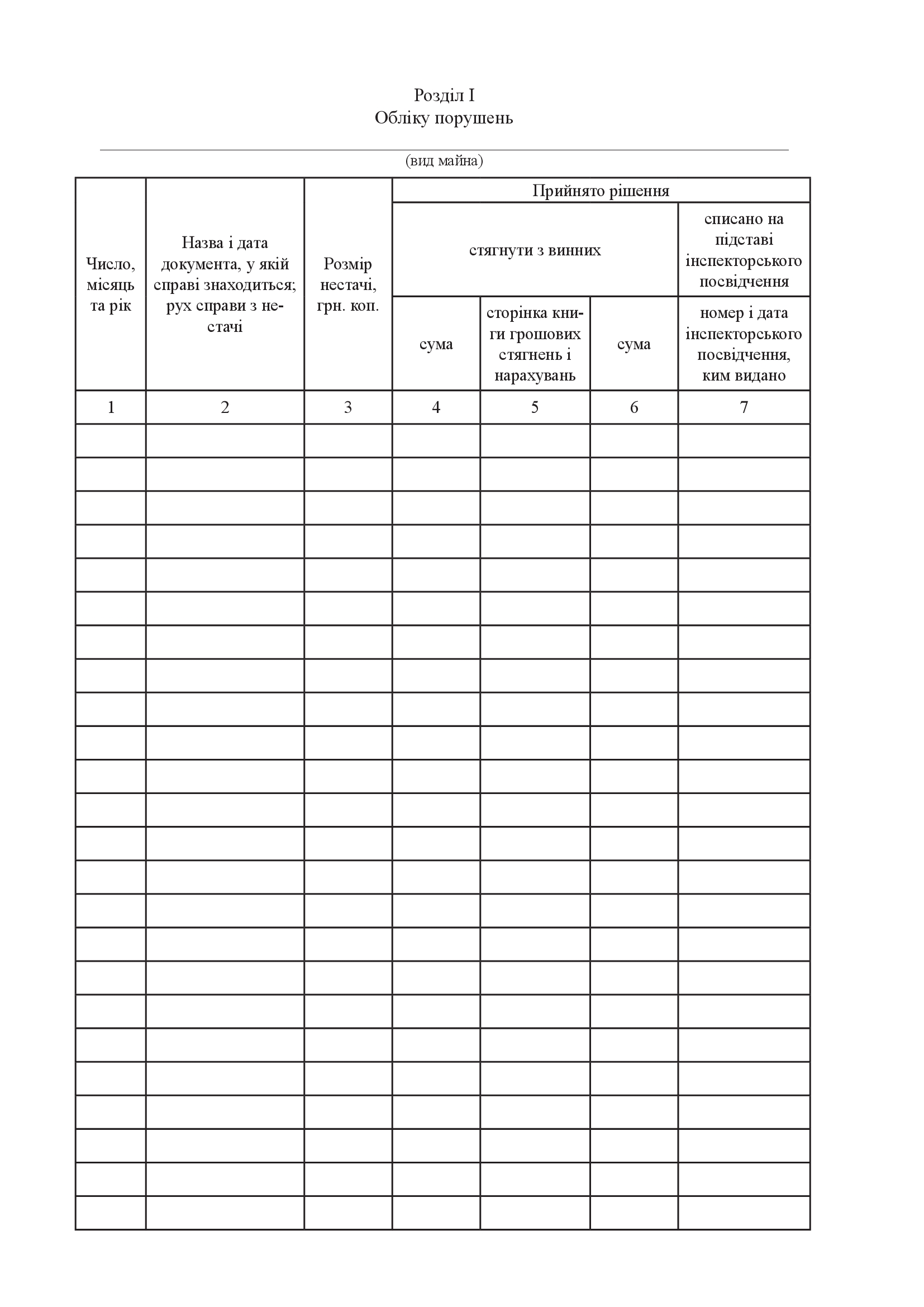 Книгу обліку нестач.