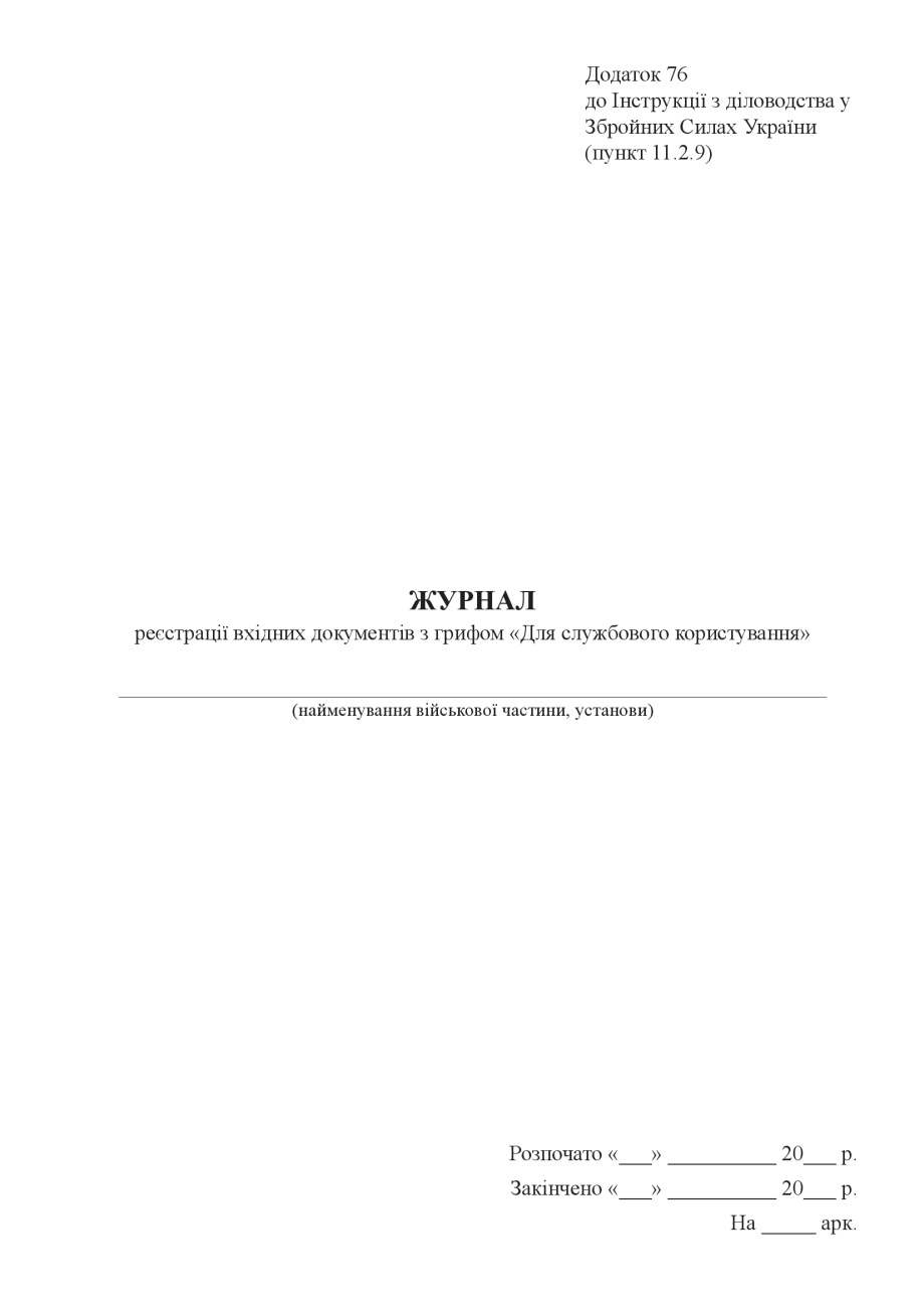 Купити Журнал реєстрації вхідних документів з грифом «Для службового користування».